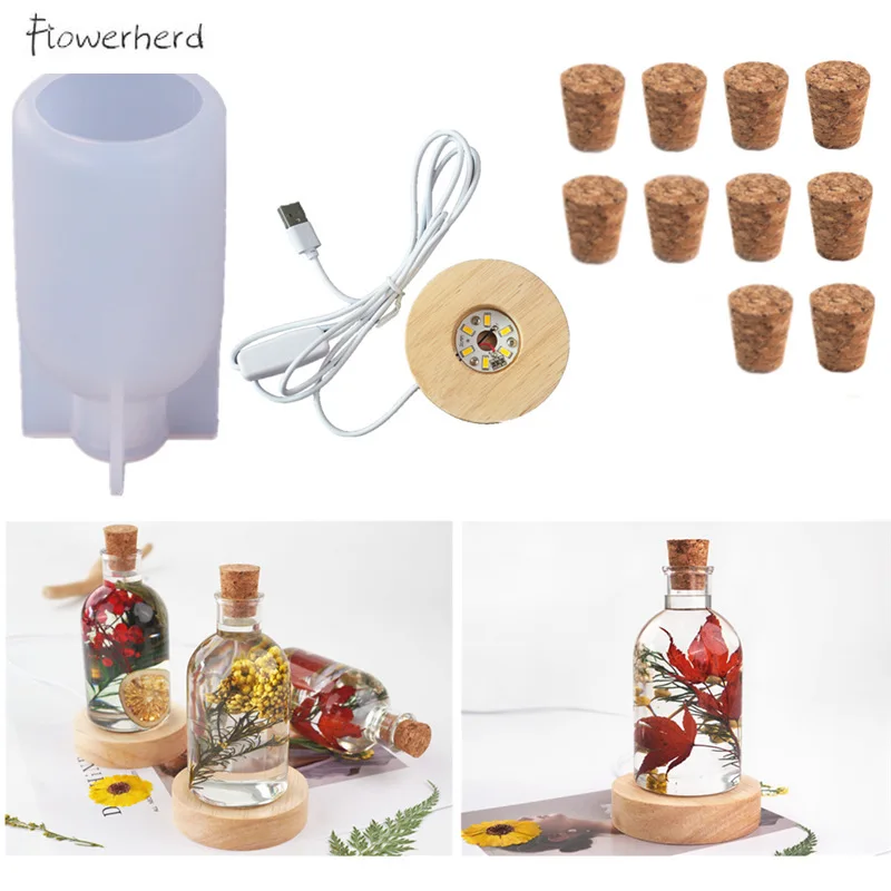 3D Ночной светильник DIY эпоксидная силиконовая форма для литья под давлением из хрустальной эпоксидной светодиодный Ночной светильник лампа держатель бутылки формы для зеркал силиконовые формы смола