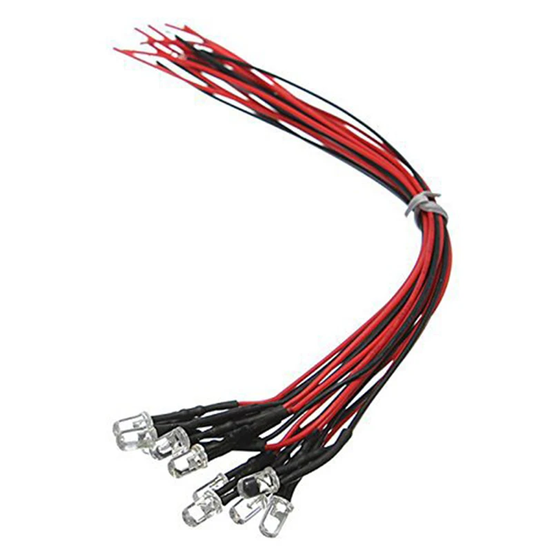 Светодиодная лампа 12 В постоянного тока, 5 мм, красный, желтый, синий, зеленый, белый, Предварительно Проводная, прозрачная, 20 см, сверхъяркая, Диодная Светодиодная лампа, 10 шт.лот