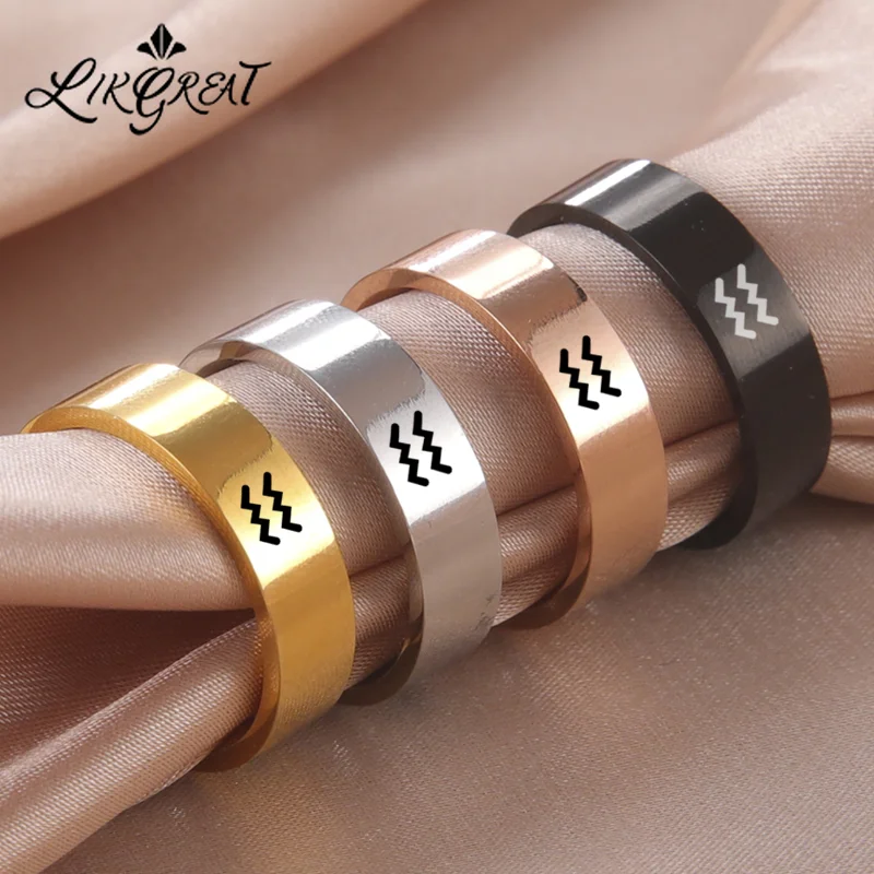 Кольца для мужчин, женщин, 12 созвездия зодиака, черные, нержавеющая сталь, пара, кольца Водолей, рыбы, подарок на день рождения, Размер 11