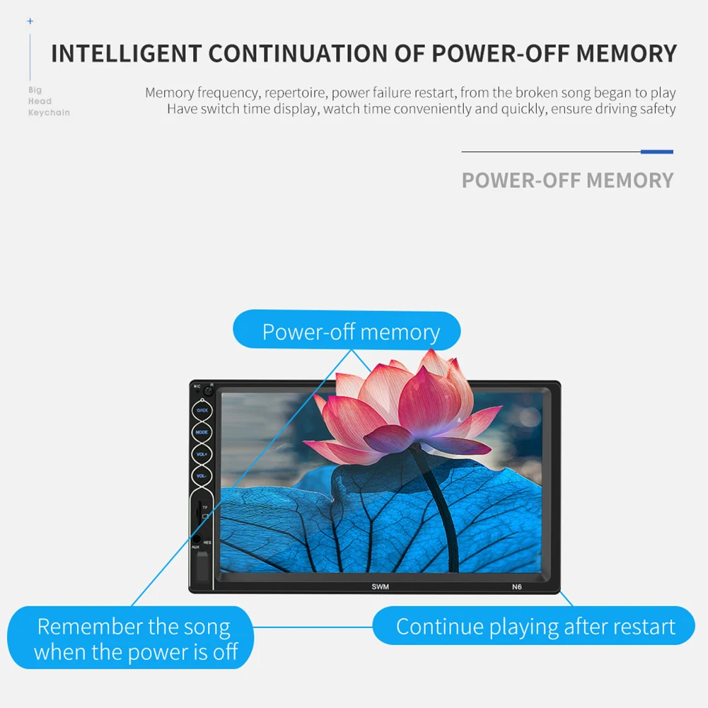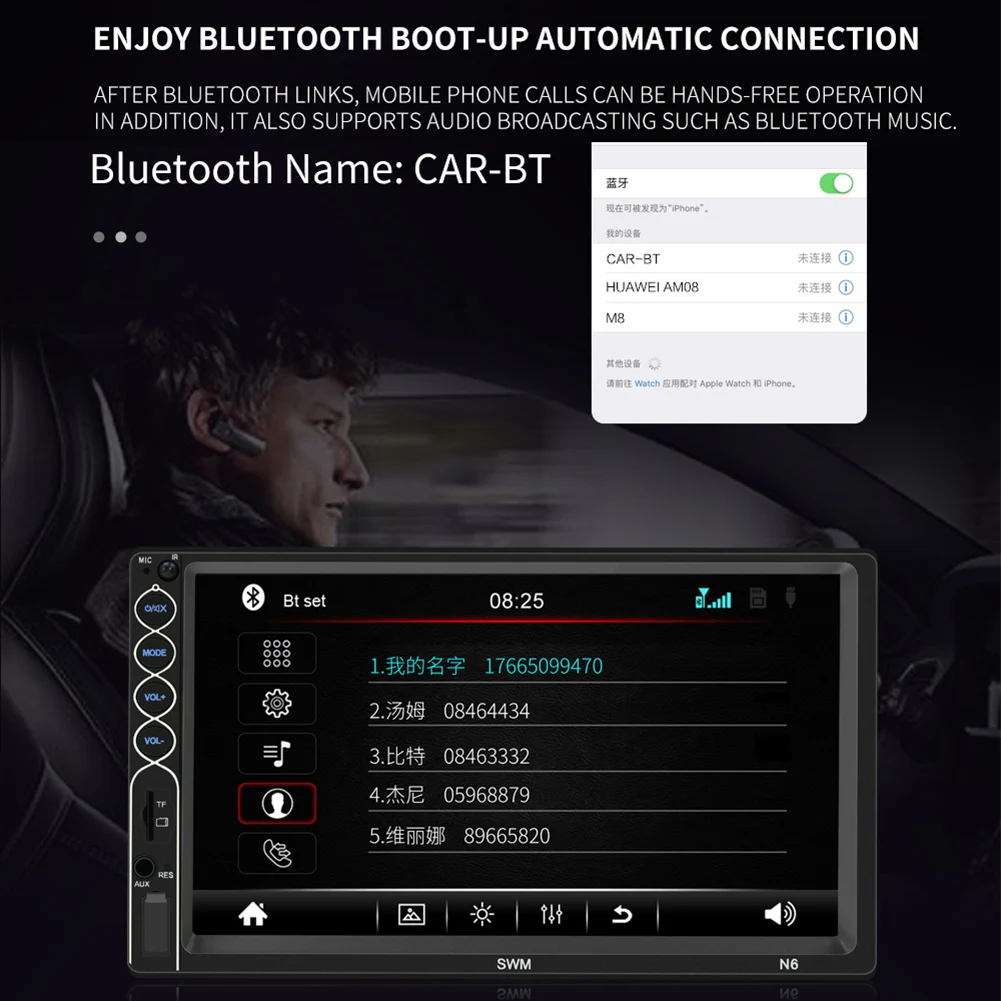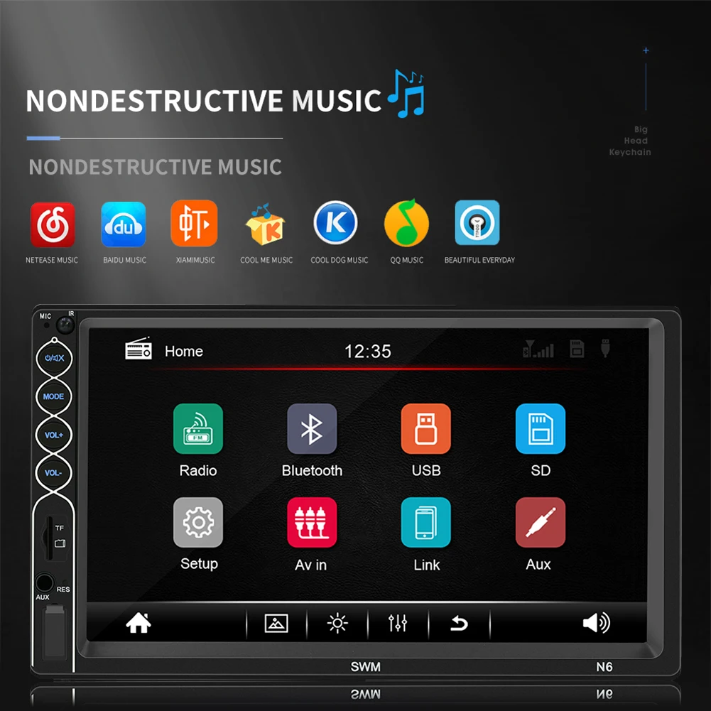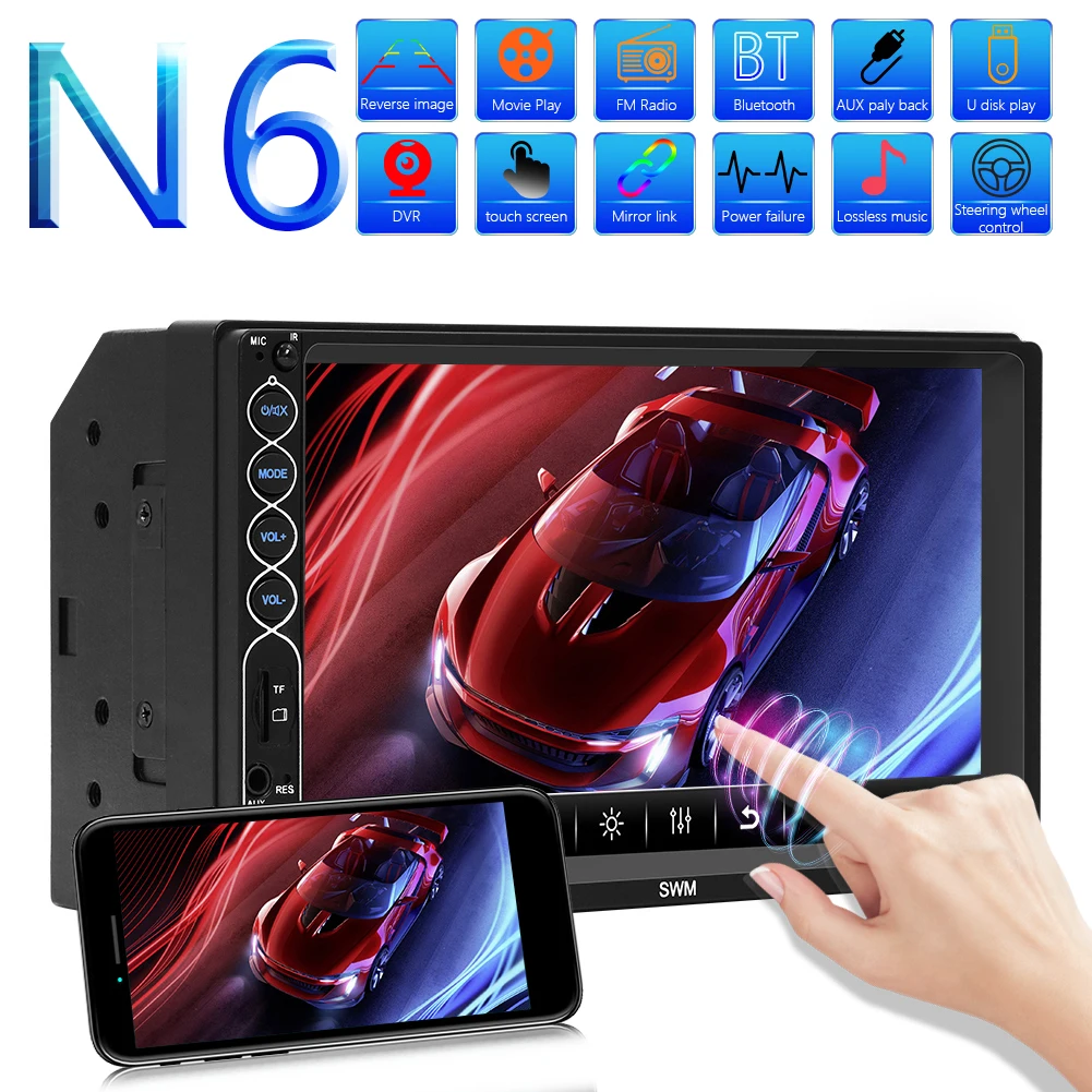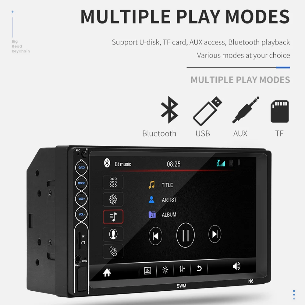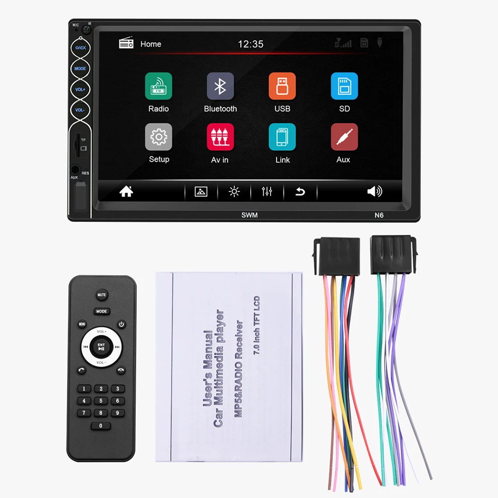 Автомагнитола N6 2 DIN, мультимедийный видеоплеер с 7-дюймовым дисплеем, совместимый с Bluetooth, AUX-in, FM-радио, приемник с двойным DIN, головное устройство