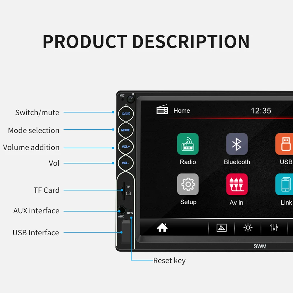 7-дюймовый HD многофункциональный автомобильный радиоприемник MP5 п...