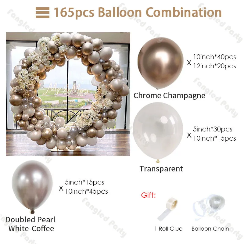 Хром шампанское Двойная Цепочка для воздушных шаров белогокофейного цвета, 165 шт.