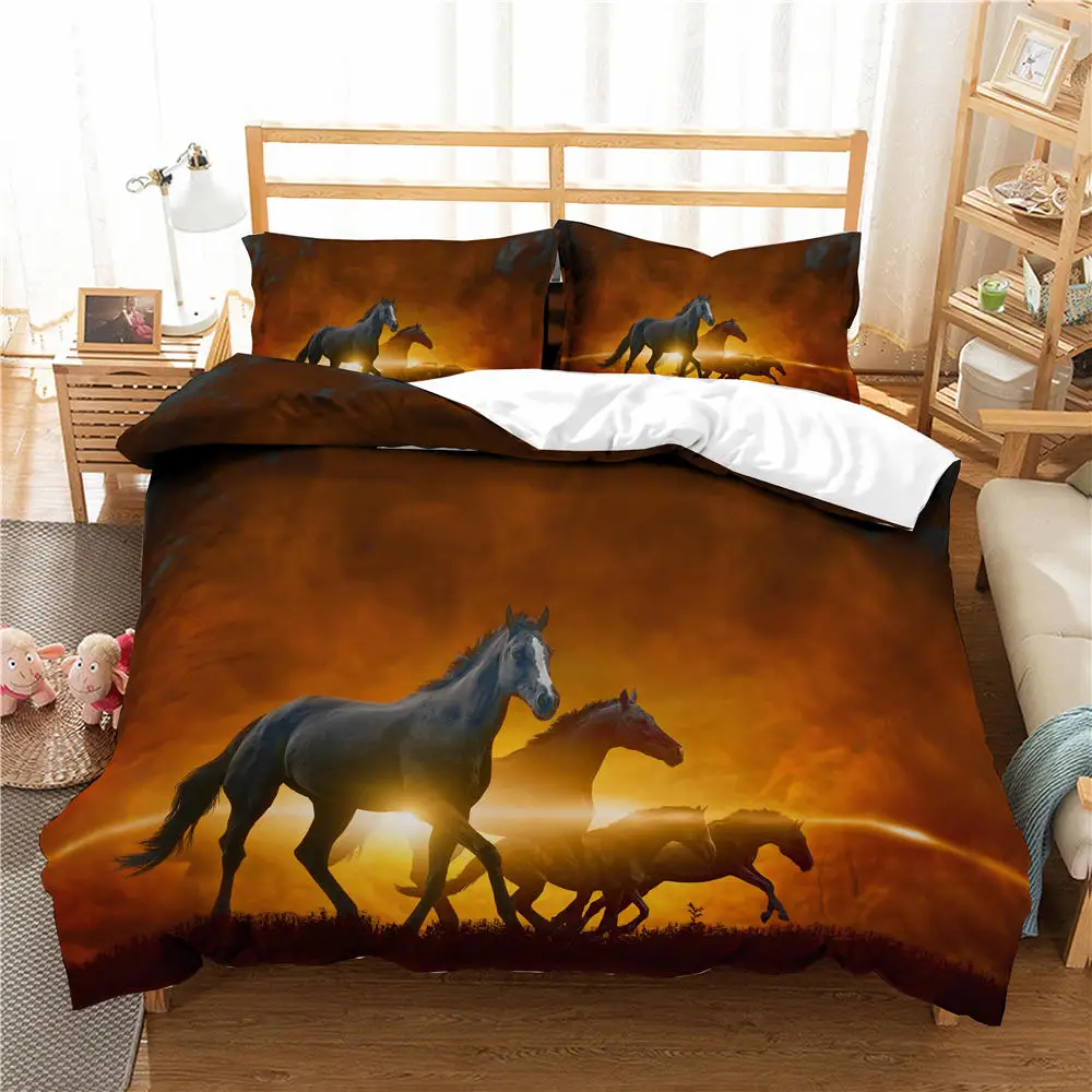 Постельное белье бегущего коня печати пододеяльник 3d Животные кровать набор домашнего текстиля покрывало один двойной Queen King Размеры