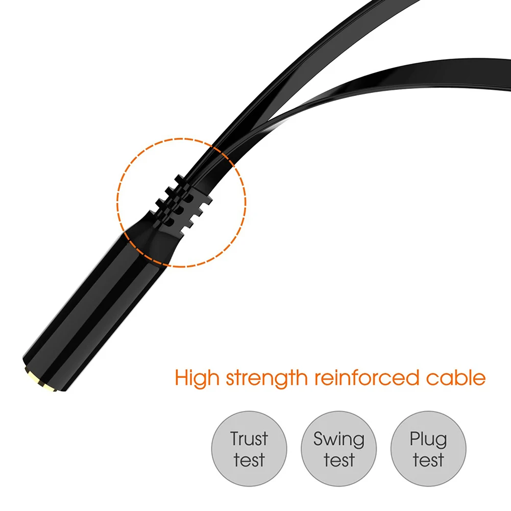 Описание:1. Адаптер 3,5 мм: вы можете подключить новые наушники (аудио и микрофон) к ПК или ноутбуку для использования с приложениями VOIP, такими как система для Skype или программ чата, для MSN Messenger, для Google Voice и др.2. Высокое качество звука: полированные Позолоченные разъемы 24K, алюминиевый корпус и бескислородный медный провод могут обеспечить более высокую передачу звука без потери сигнала и шума. Обеспечивает отличный стереозвук в обоих выходах.3. Высококачественные материалы: прочный защитный слой изготовлен из чистой меди и алюминиевого корпуса. Позолоченный штекер и кабель в нейлоновой оплетке значительно повышают прочность и продлевают срок службы. Кольцо для снятия напряжения коннектора делает его более стабильным и гибким.4. Широко используется: подходит для большинства устройств, таких как ноутбуки и ПК. Длина кабеля составляет около 20 см/8 дюймов, компактный и легкий, подходит для путешествий и самолета.5 посылка: Разветвитель для наушников 3,5 мм. Важное примечание: подходит только для стандартных гарнитур CTIA Android.Спецификация:Материал: ПВХФункция: Переключение звукаДлина: около 20 см/7,87 дюймаЦвет: черныйПодходит для: гарнитуры 3,5 ммУпаковочный лист: