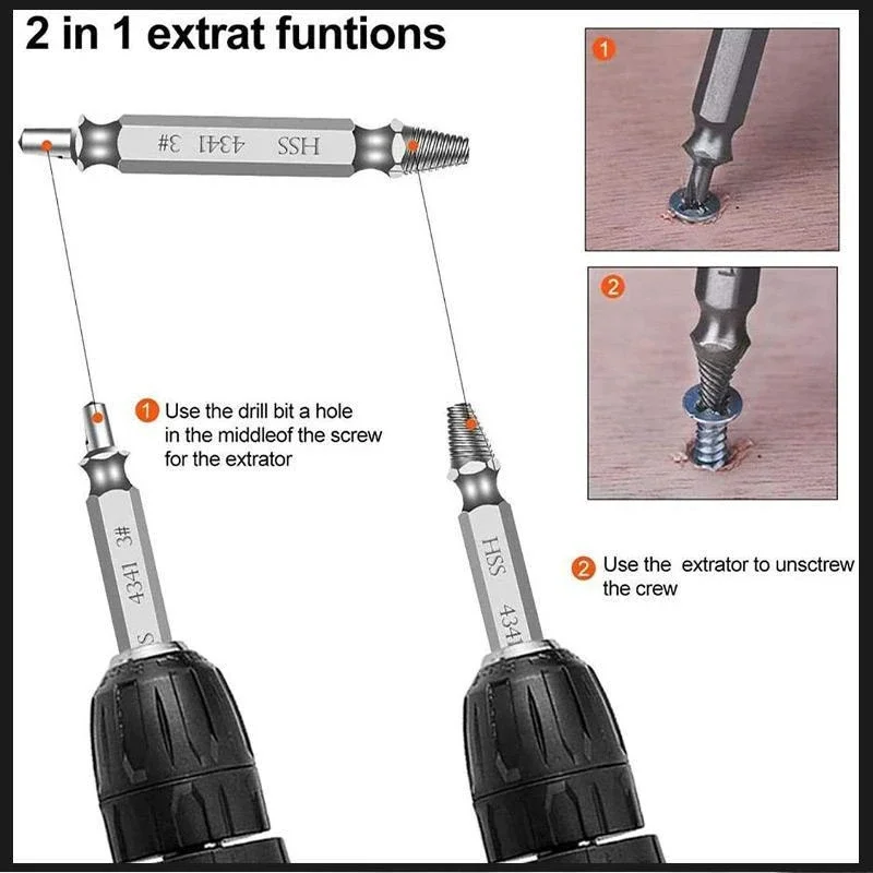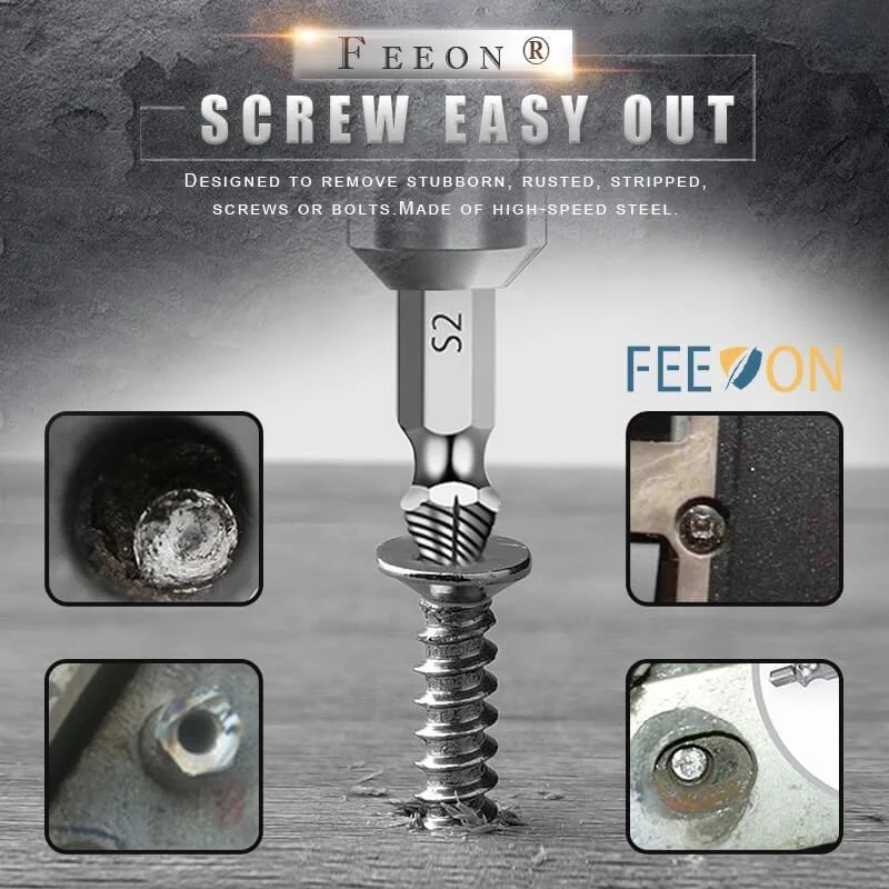 Эффективно удалите поврежденные винты Трудно удалить старые и сломанные винты? Zezzo®Винтовой простой комбинированный экстрактор и сверло вместе специально разработаны для удаления зачищенных или поврежденных винтов и болтов в стеновых плитах, древесных и листовых металлических применениях быстро и легко, что делает вашу работу проще. Высококачественный материал Zezzo®Винт Easy Out изготовлен из превосходной высокоскоростной стали с высокой твердостью и антикоррозийными свойствами, что обеспечивает высокую эффективность и стабильную производительность. Отлично подходит для снятия полосок, сломанной головки, ржавчины, Отвинчивания, свободного вращения и винтов. Простота в использовании Удобнее, чем двухстороннее устройство для удаления винтов. Два простых шага, просто нужно электрическое сверло, никаких других инструментов не нужно, не нужно менять вверх и вниз, выберите немного меньше, чем поврежденный винт, вы можете легко удалить винт, пожалуйста, убедитесь, что во время процесса сверло запускается в обратном направлении. Больше вариантов размеров Включает в себя 4 разных размера- ( 1 #, 2 #, 3 #, 4 #) в одном наборе, который подходит для большинства сверл и размеров винтов или болтов (4-12 мм). Этот набор для удаления винтов работает на шестигранных болтах, машинных винтах, болтах ЛАГ, деревянных винтах, шестигранных болтах, винтах из листового металла, закругленных болтах и т. д.
