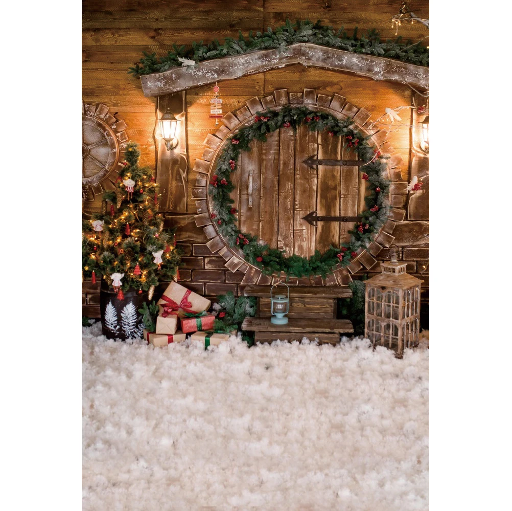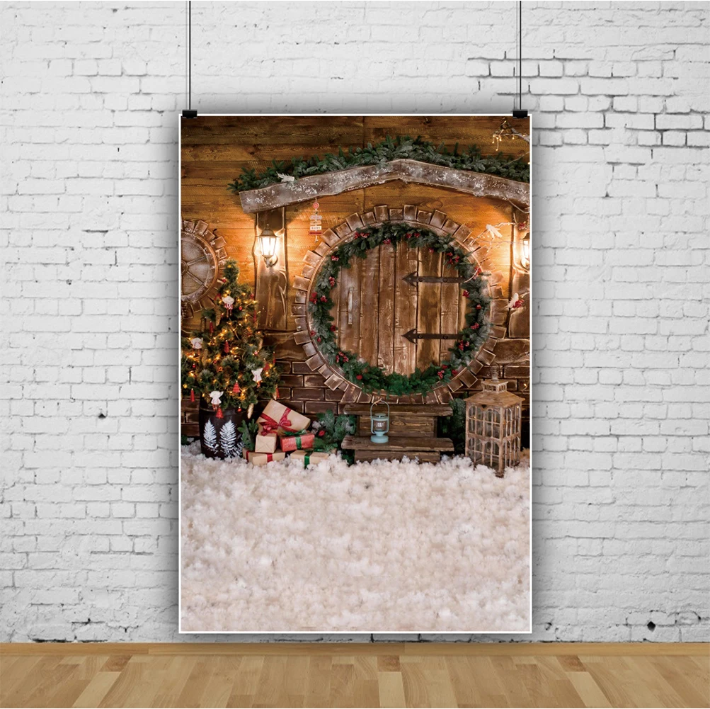 Рождественские фоны для фото дерево камин с венком подарок деревянн...