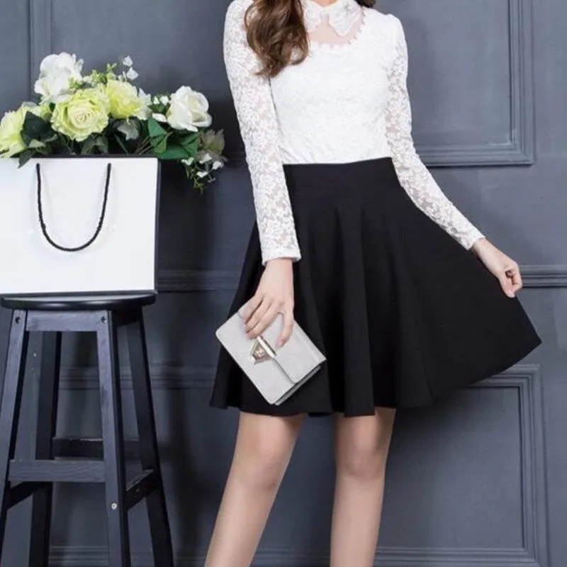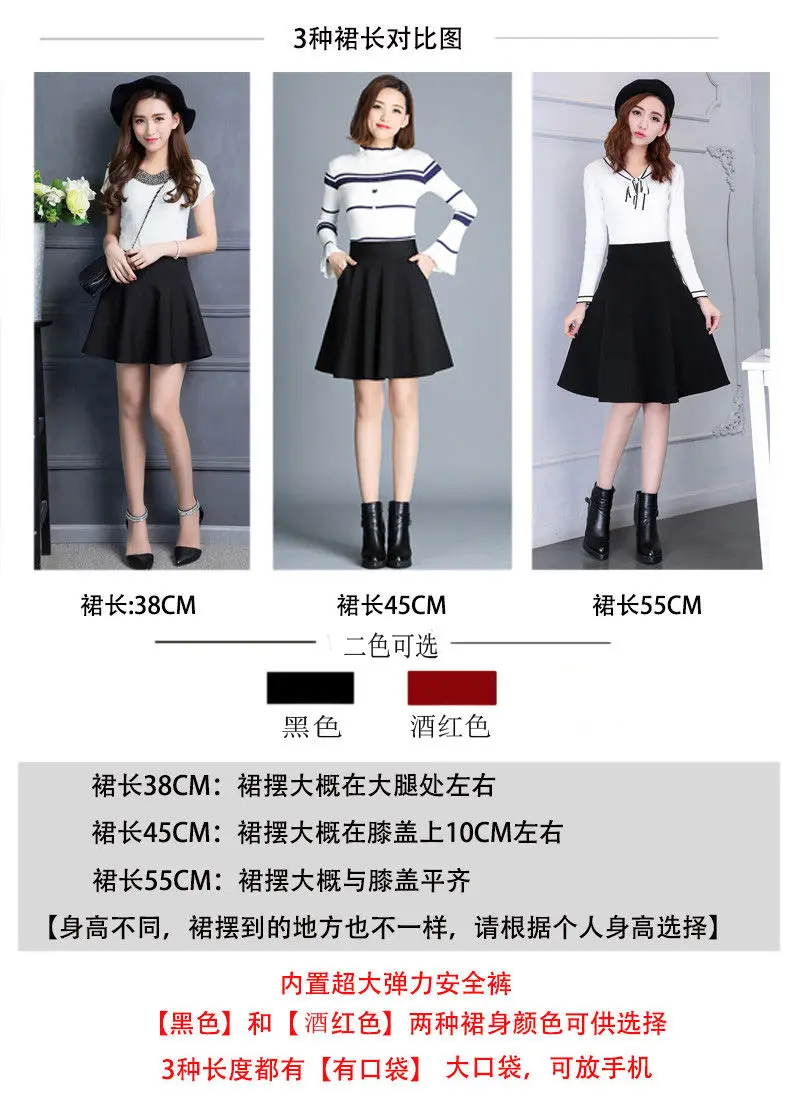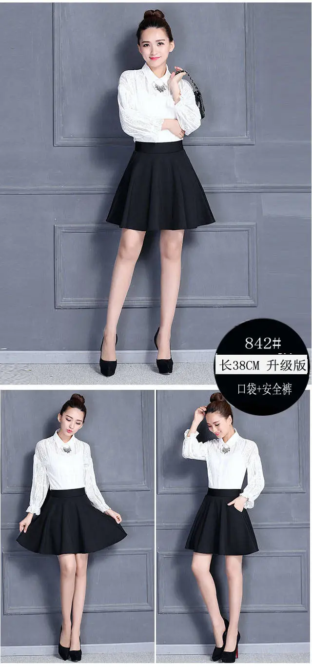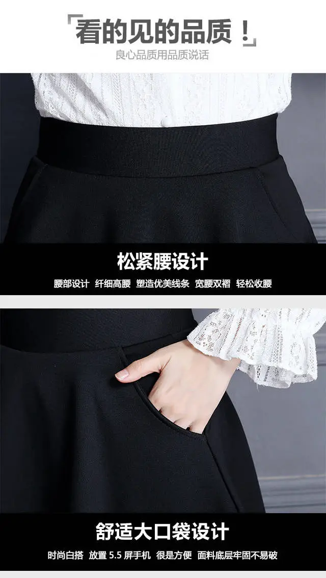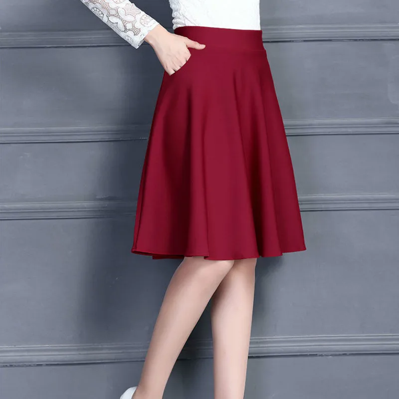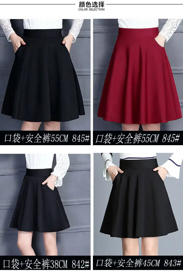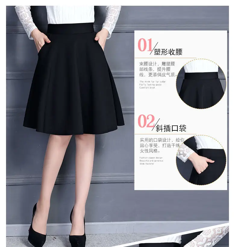 Женские юбки, горячая распродажа, черные плиссированные карманы, эластичная талия, повседневные свободные офисные элегантные женские юбки