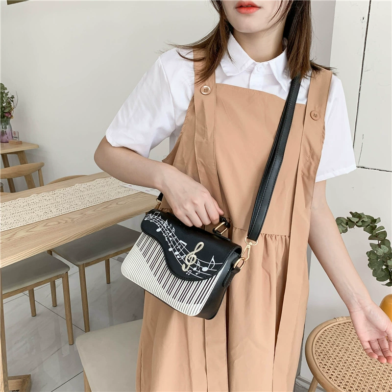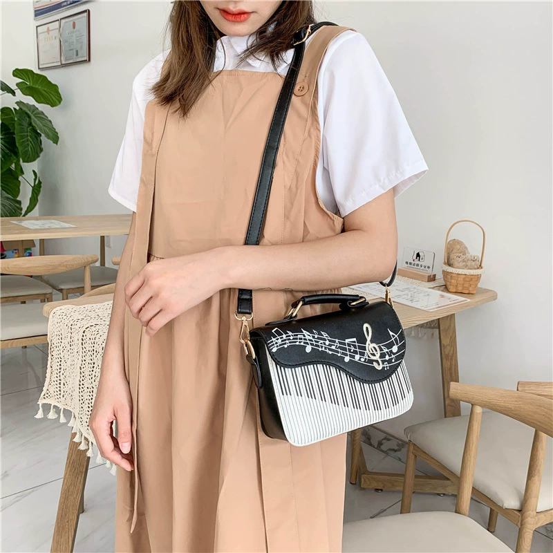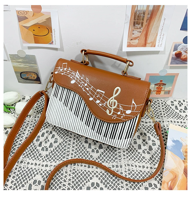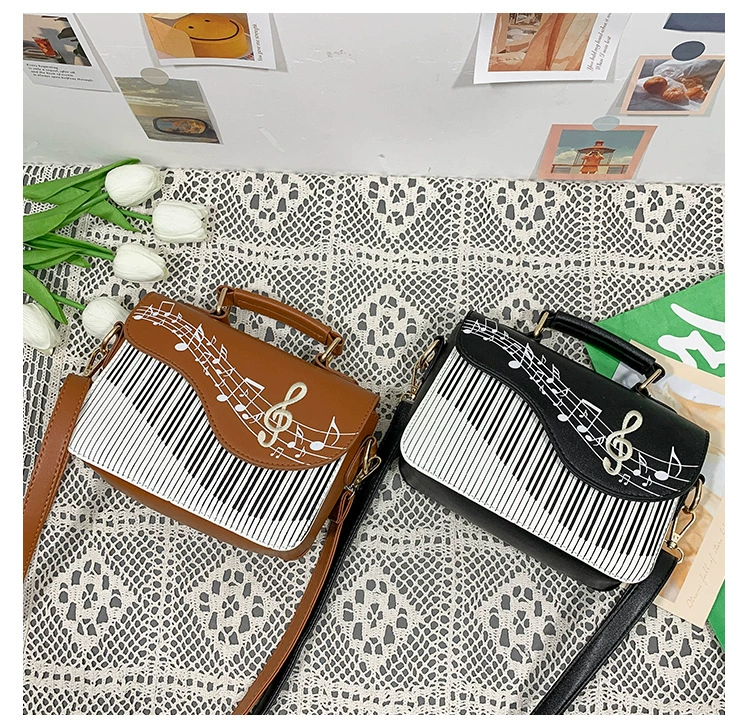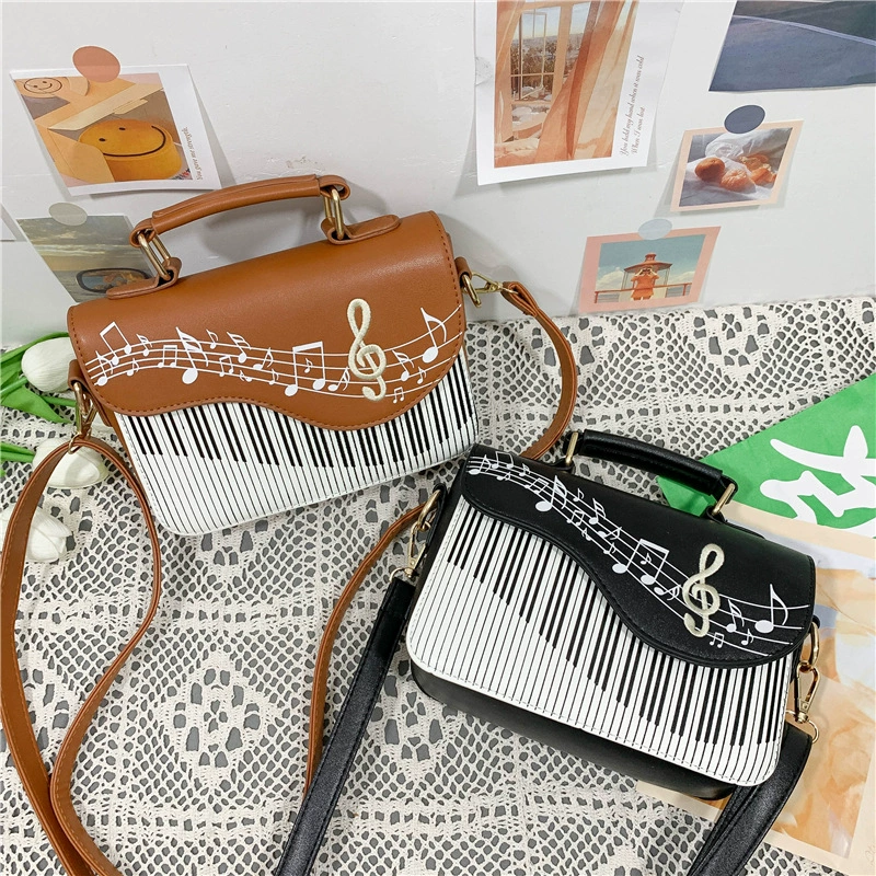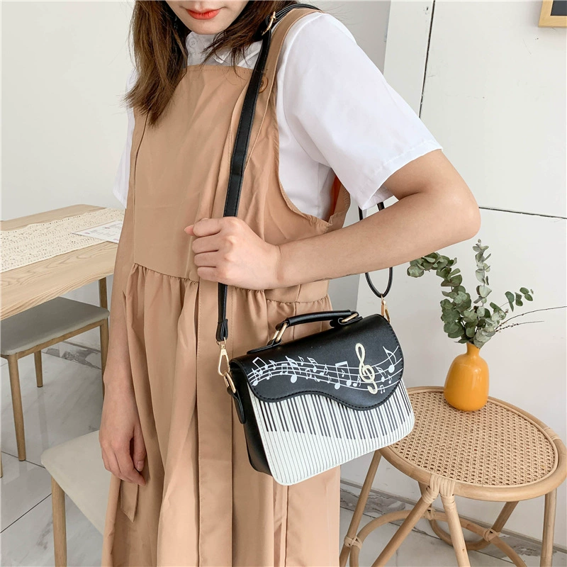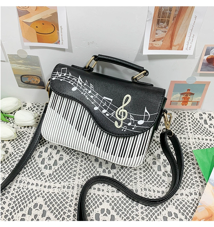 Сумка женская из искусственной кожи, с клапаном и музыкальными нотами