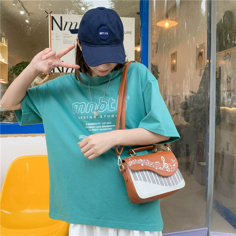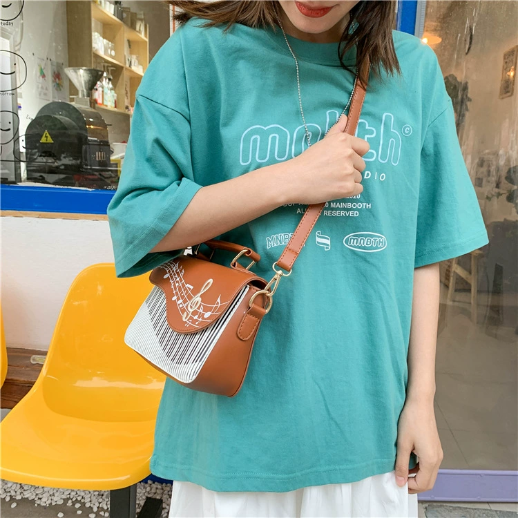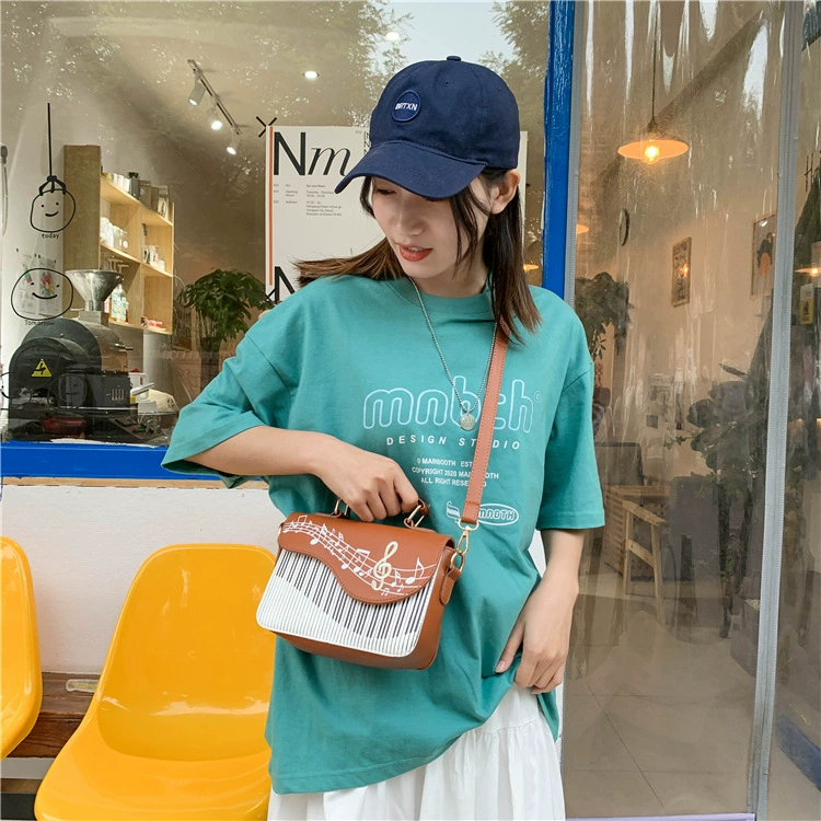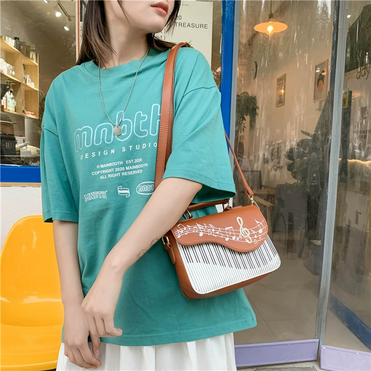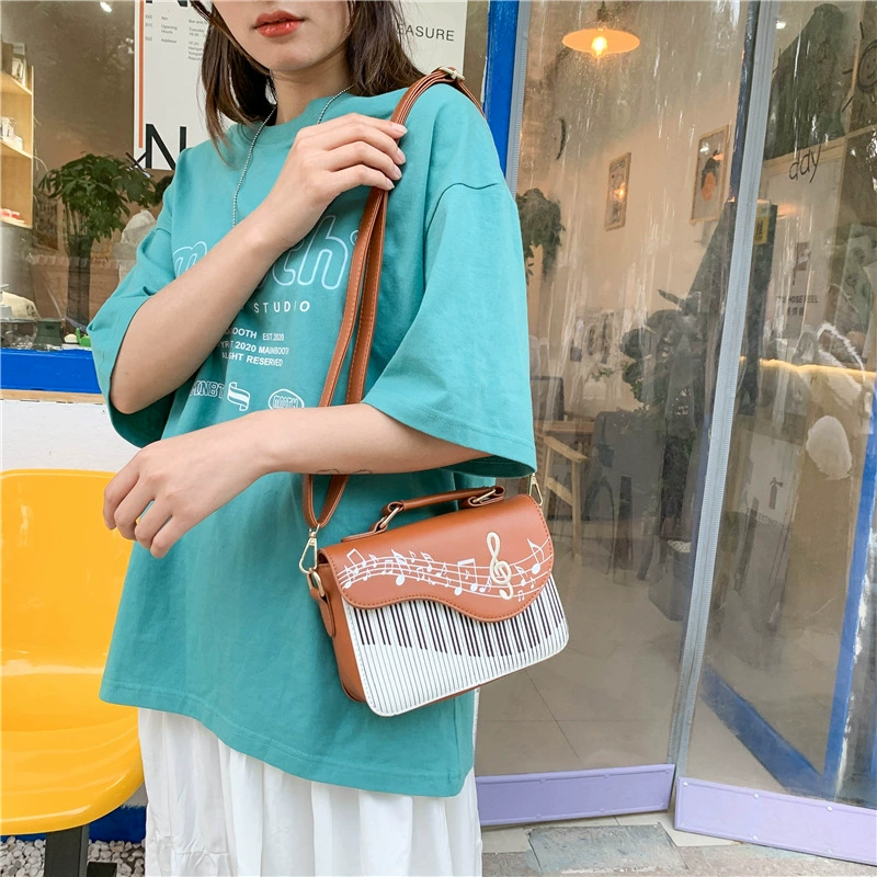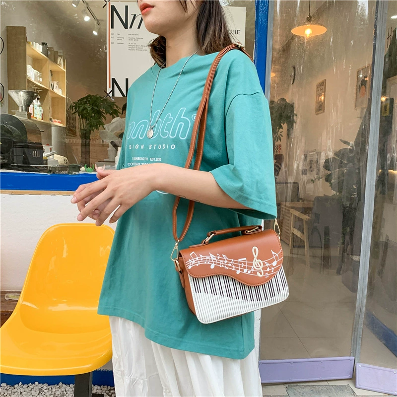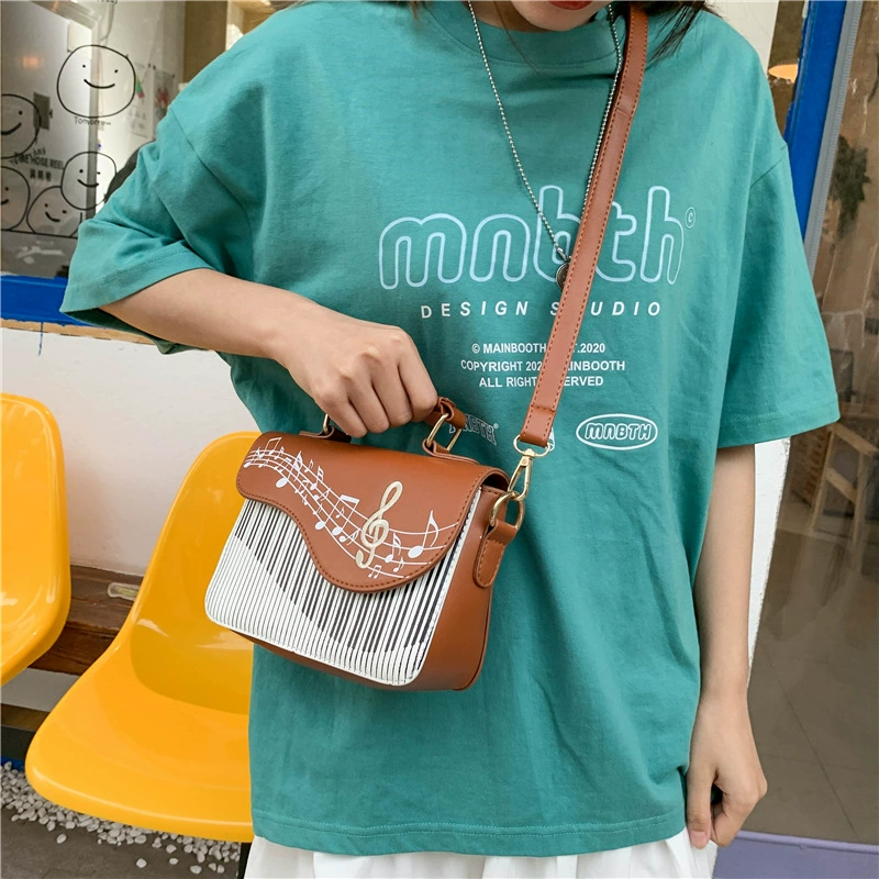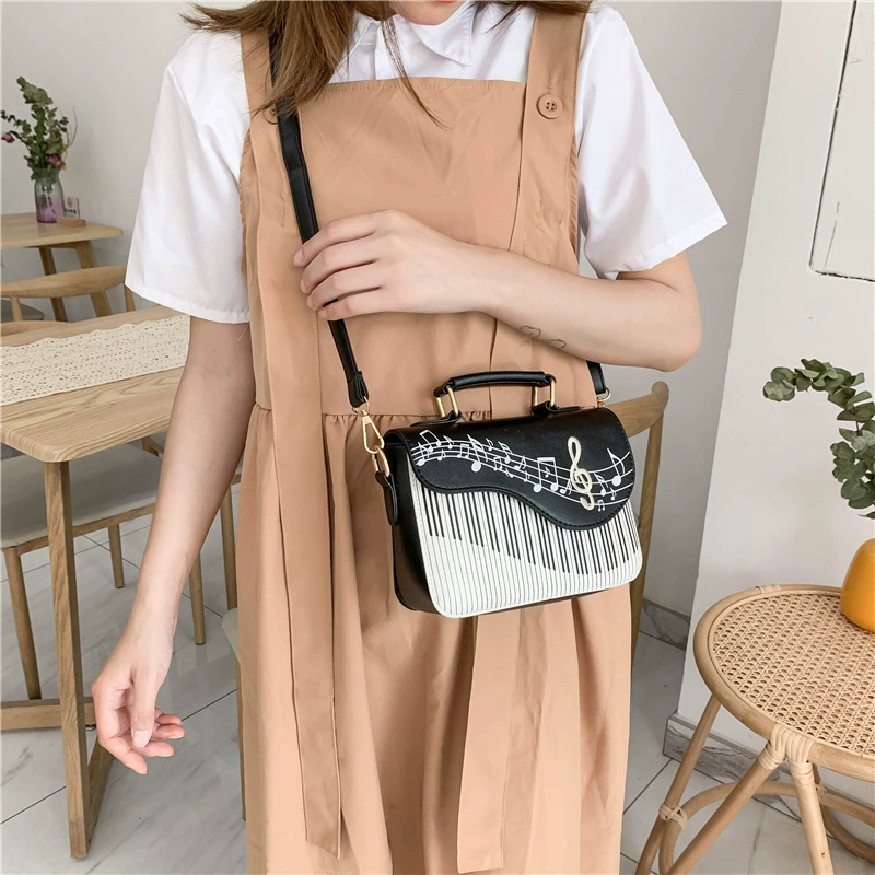 Сумка женская из искусственной кожи, с клапаном и музыкальными нотами