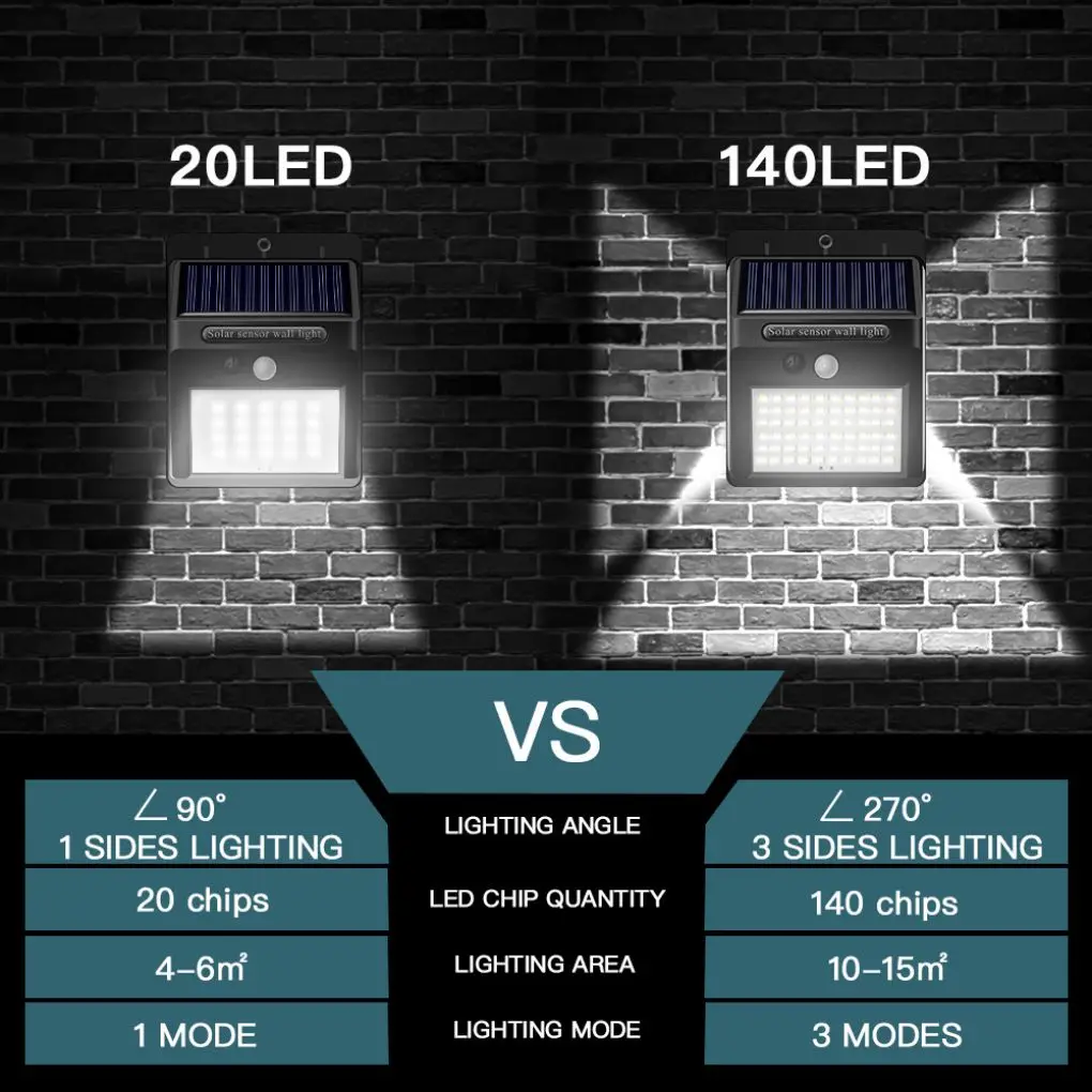 140 светодиодный Солнечный светодиодный светильник Открытый движения PIR Сенсор Водонепроницаемый уличного фонаря ворота коридор настенный светильник сада украшения на открытом воздухе