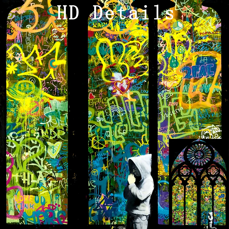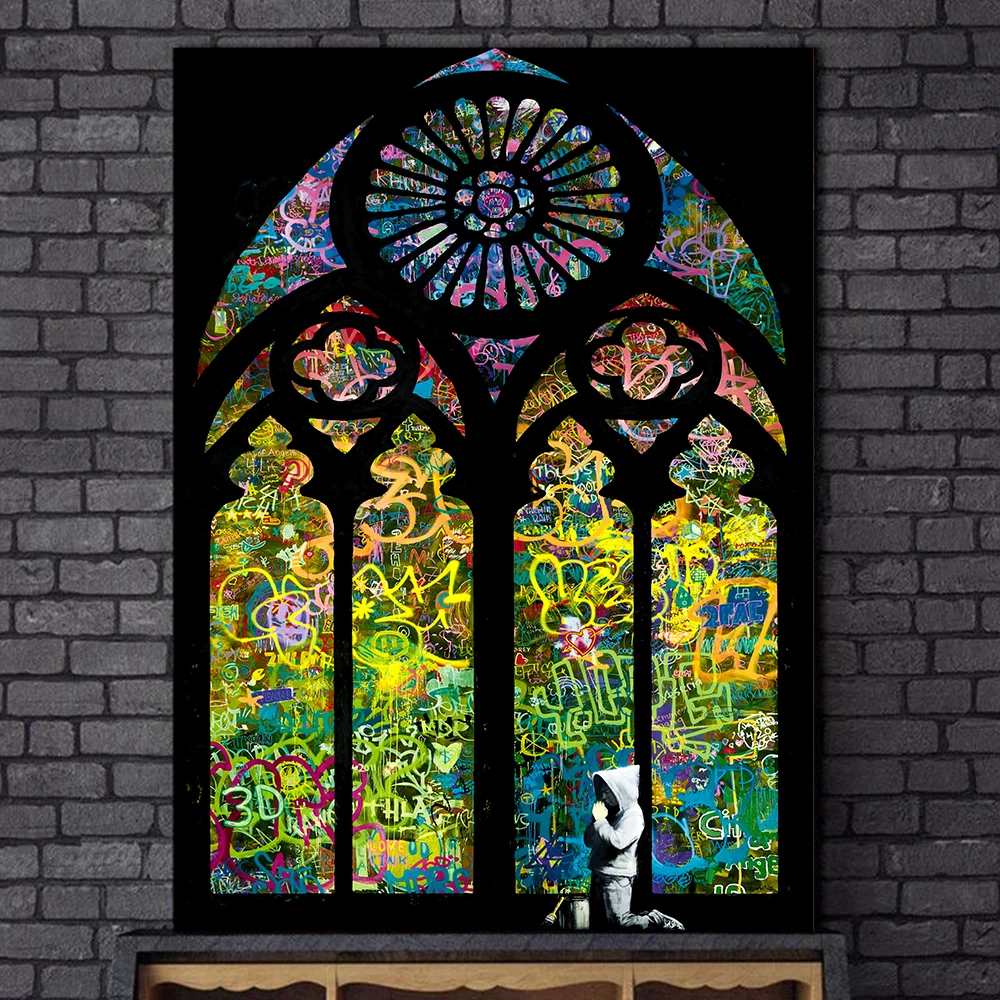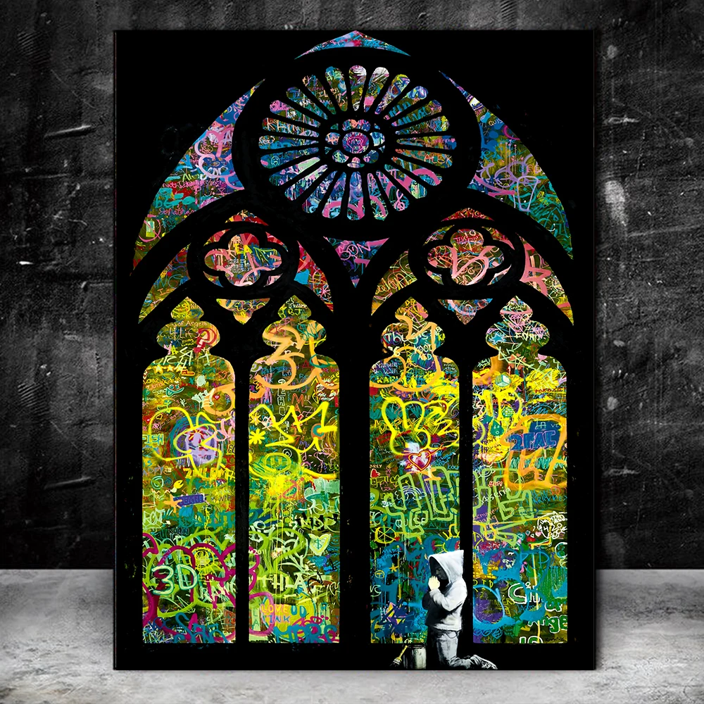 Бэнкси витражное стекло для мальчиков Молитвенное строение граффити уличное искусство картины на холсте настенные картины Домашний декор