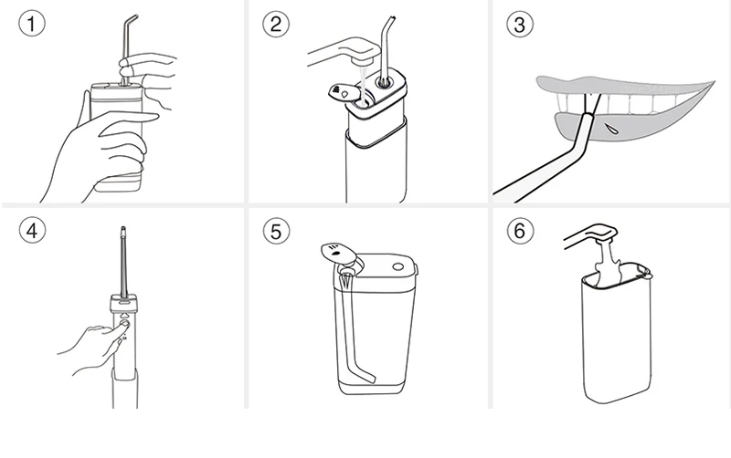 Модель продукта: M6 Диаметр сопла: 0,6 мм Частота импульсов: 1600 раз/мин Давление воды: 40-140PSI Емкость резервуара для воды: 130 мл Емкость аккумулятора: 1100 мАч Класс водонепроницаемости: IPX8 Порт зарядки: Micro USB Шестерня: 3-я передача
