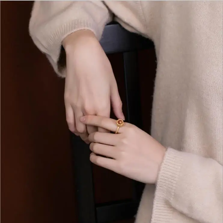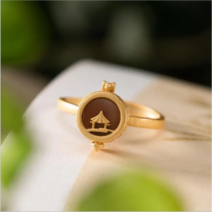 Природный южного красный парфюмерный мешок кольцо с серебряным покрытием красный агат павильон Pavilion ниша для статуя Будды Открытое кольцо может открыть