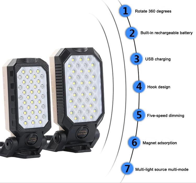 Светодиодный фонарь для рабочего освещения, портативный, перезаряжаемый через USB, магнитный дизайн, с дисплеем питания, регулируемый водонепроницаемый фонарь для кемпинга