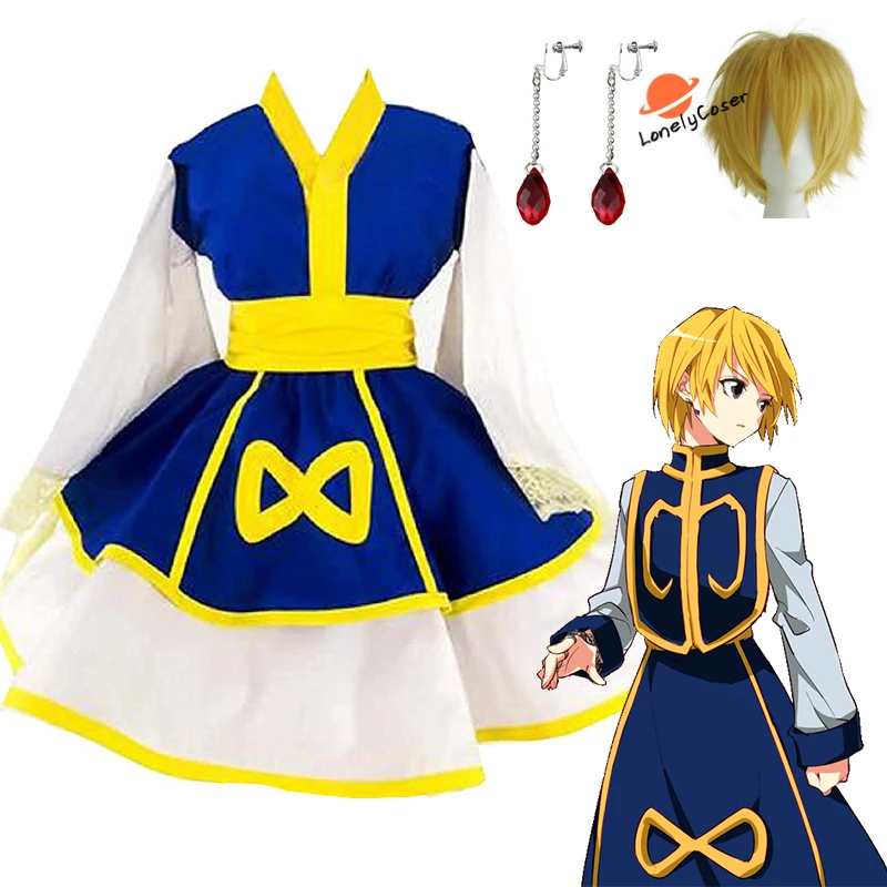 Аниме Охотник х Косплей Костюм Kurapika парик серьги Платье в стиле лолита кимоно костюм для Хэллоуина вечеринки форма для мужчин и женщин, для девушек и женщин