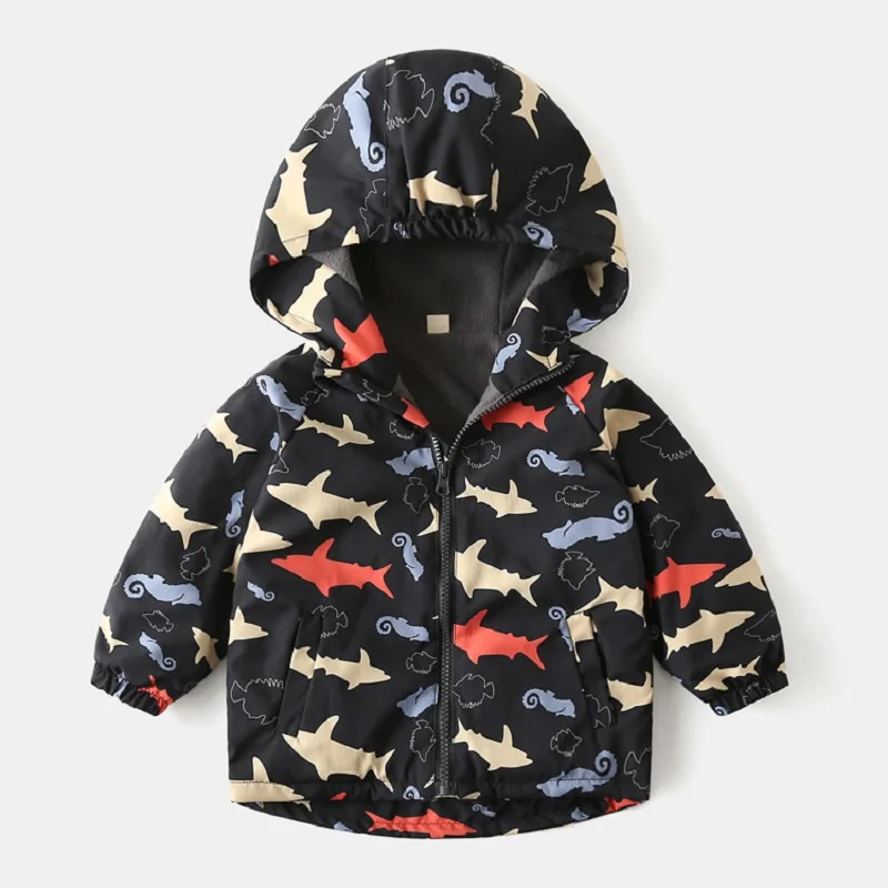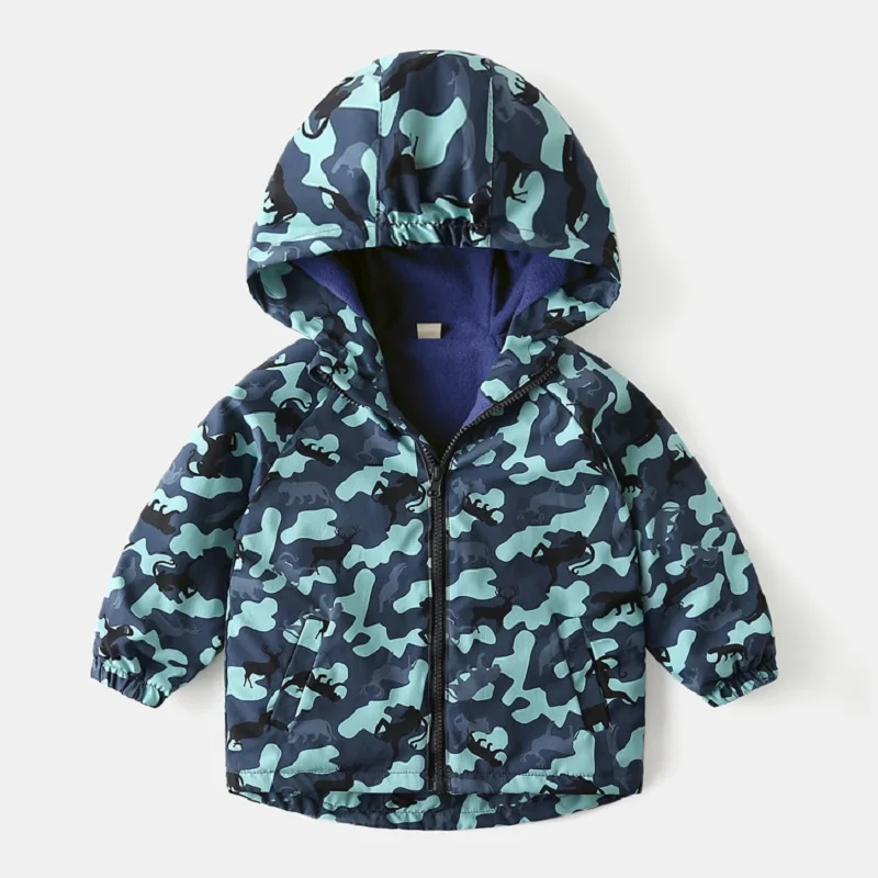 Осенне-зимняя камуфляжная ветровка для мальчиков с мультяшным принтом бархатная ветровка средней длины теплый и удобный костюм с капюшоном