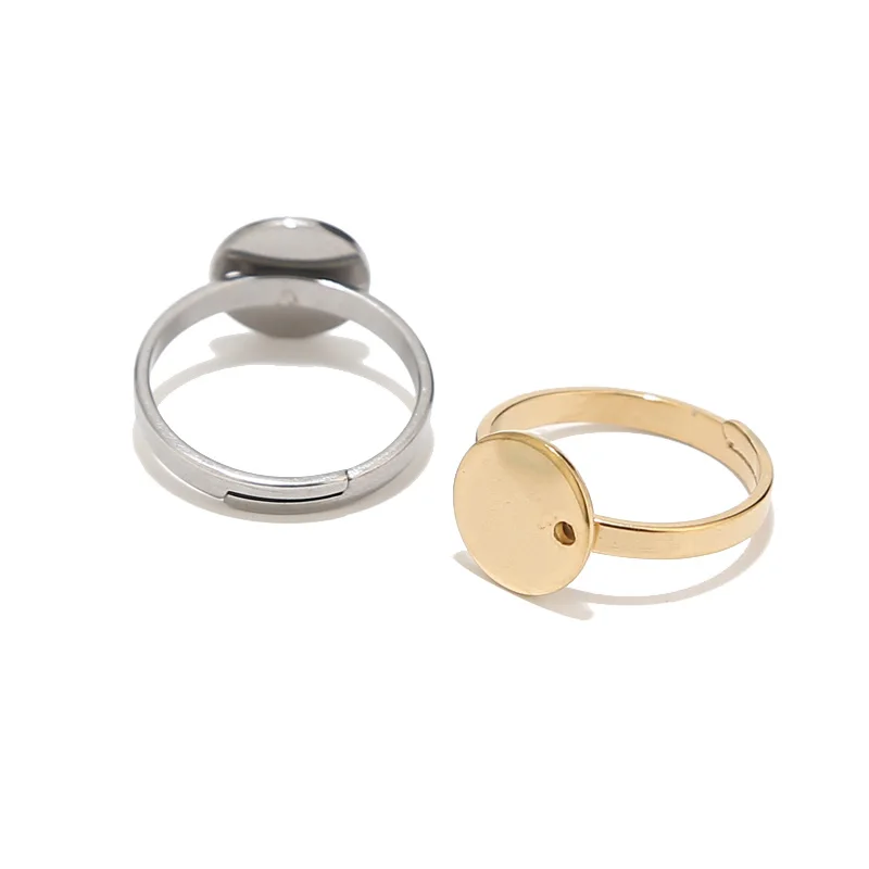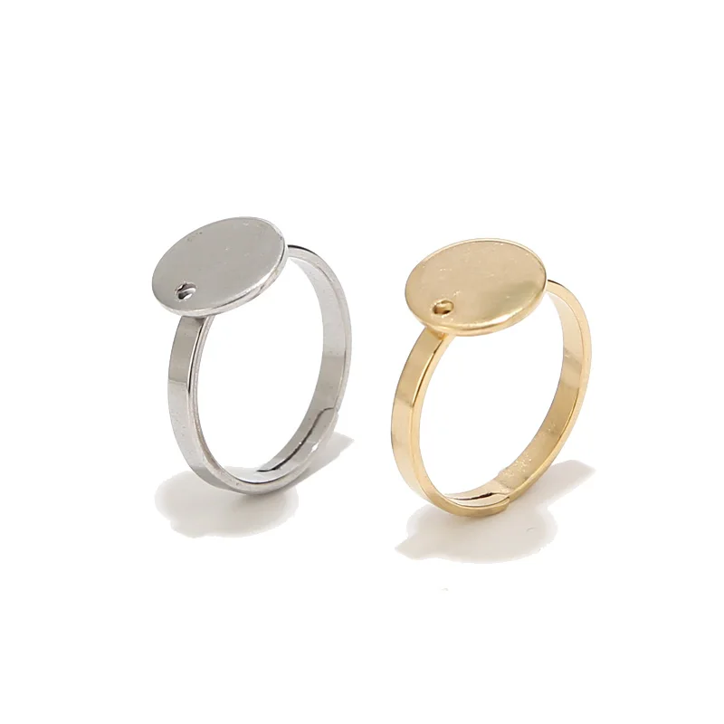Позолоченные круглые плоские кольца из нержавеющей стали, 10 шт.лот, ширина 10 мм, регулируемые настройки для кольца, фурнитура для самостоятельного изготовления ювелирных изделий