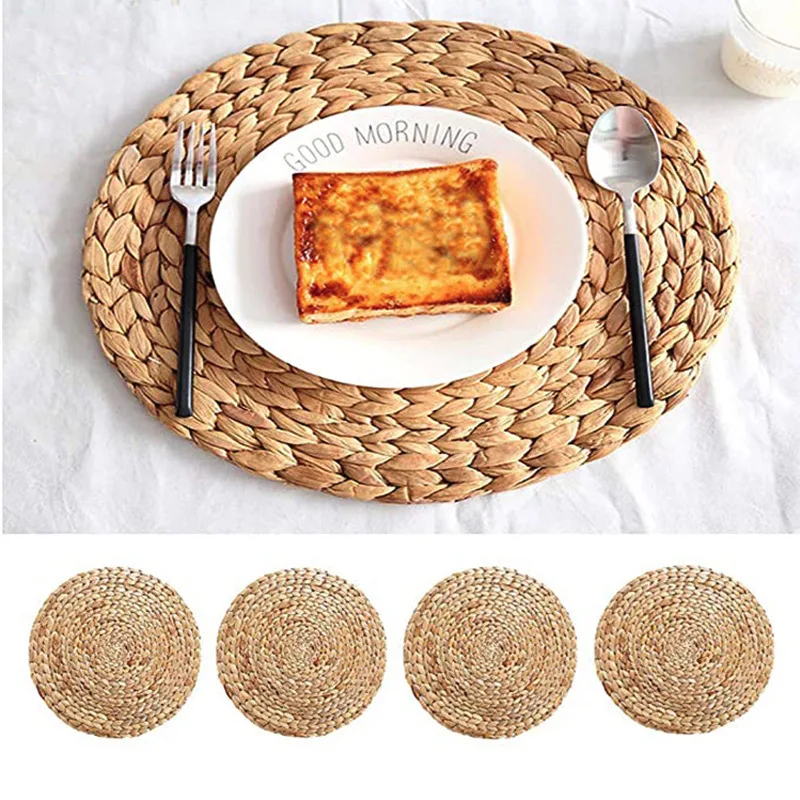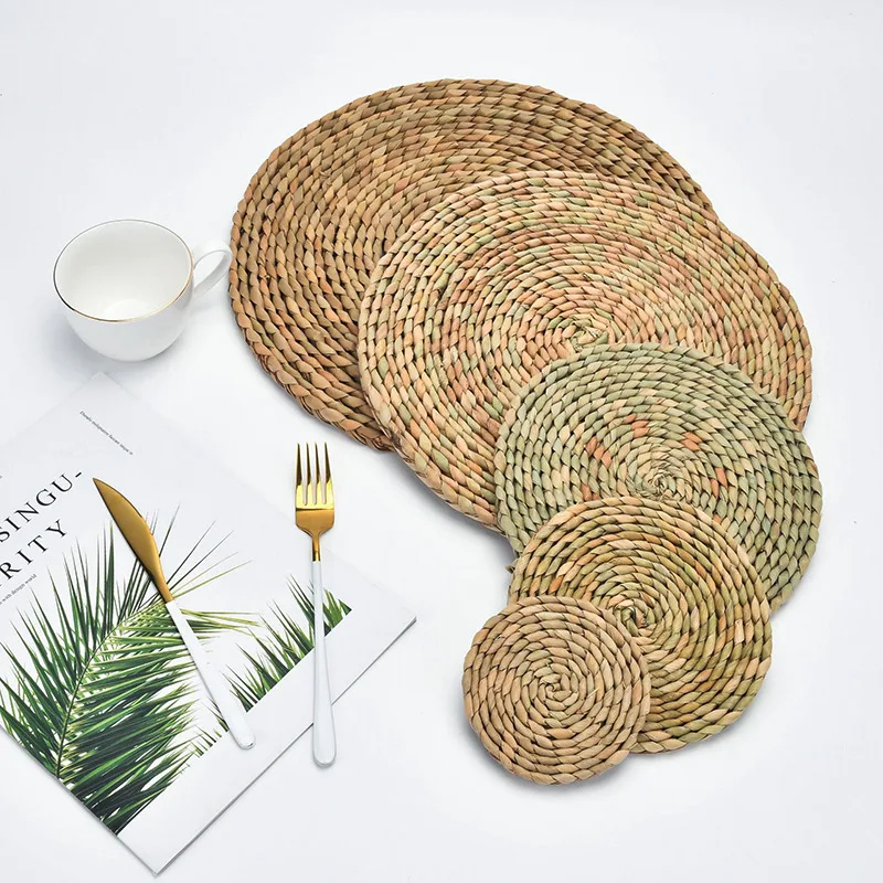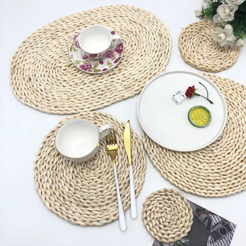 Круглый стол столовых тканые плетеные каботажное судно Nordic Стиль Non-slip теплоизоляция Кубок коврики декоративные подставки ручной работы Подставка для столовых приборов