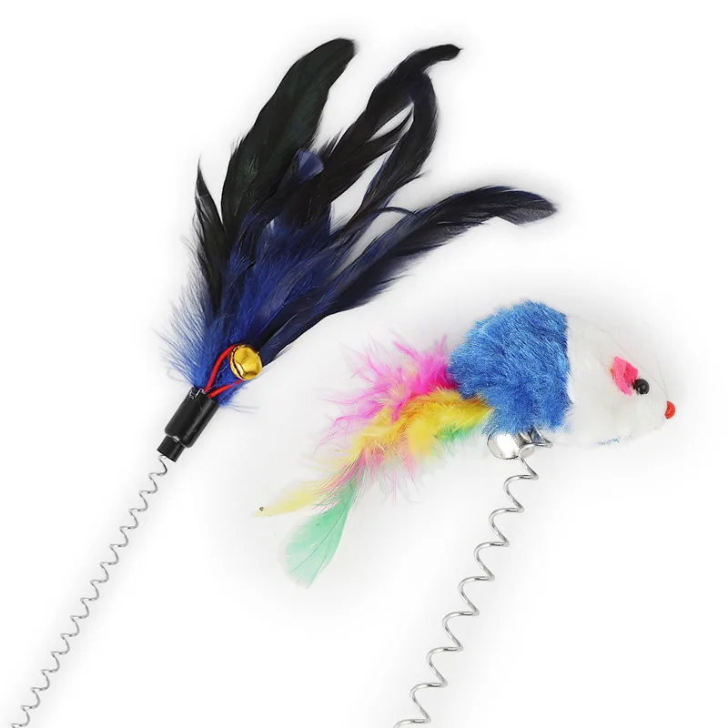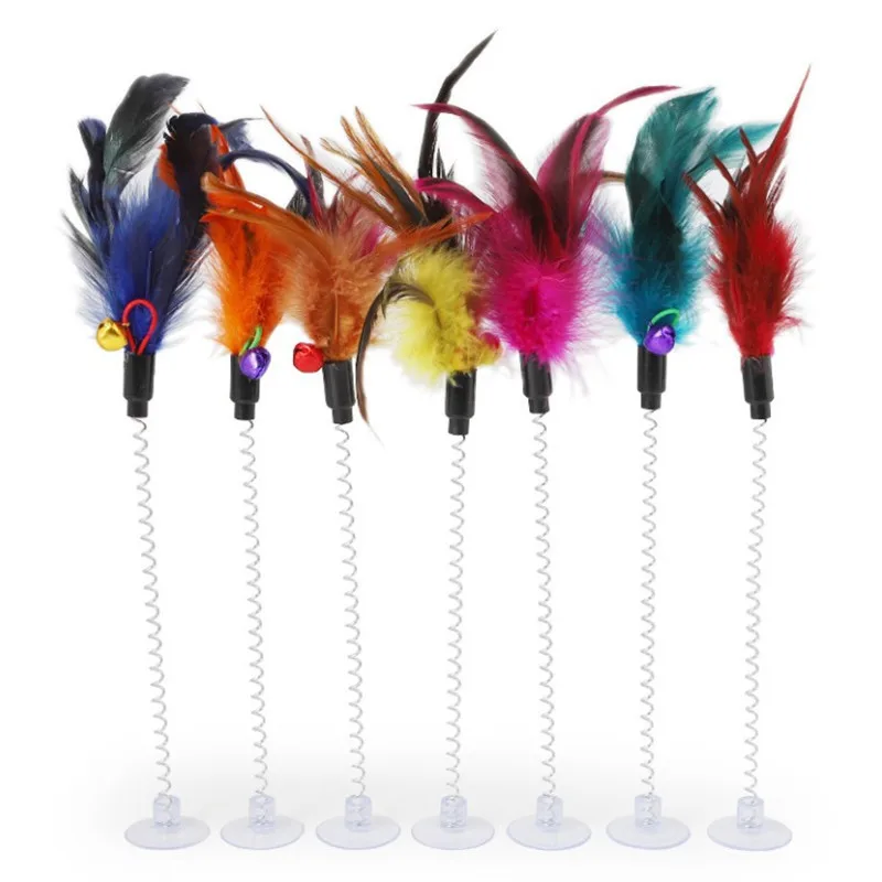 Игрушки для кошек, палочка с перьями, пружинная присоска с колокольчиком, мышь, товары для кошек, весеннее перо, эластичные перья для домашних животных, игрушка-палочка для кошек