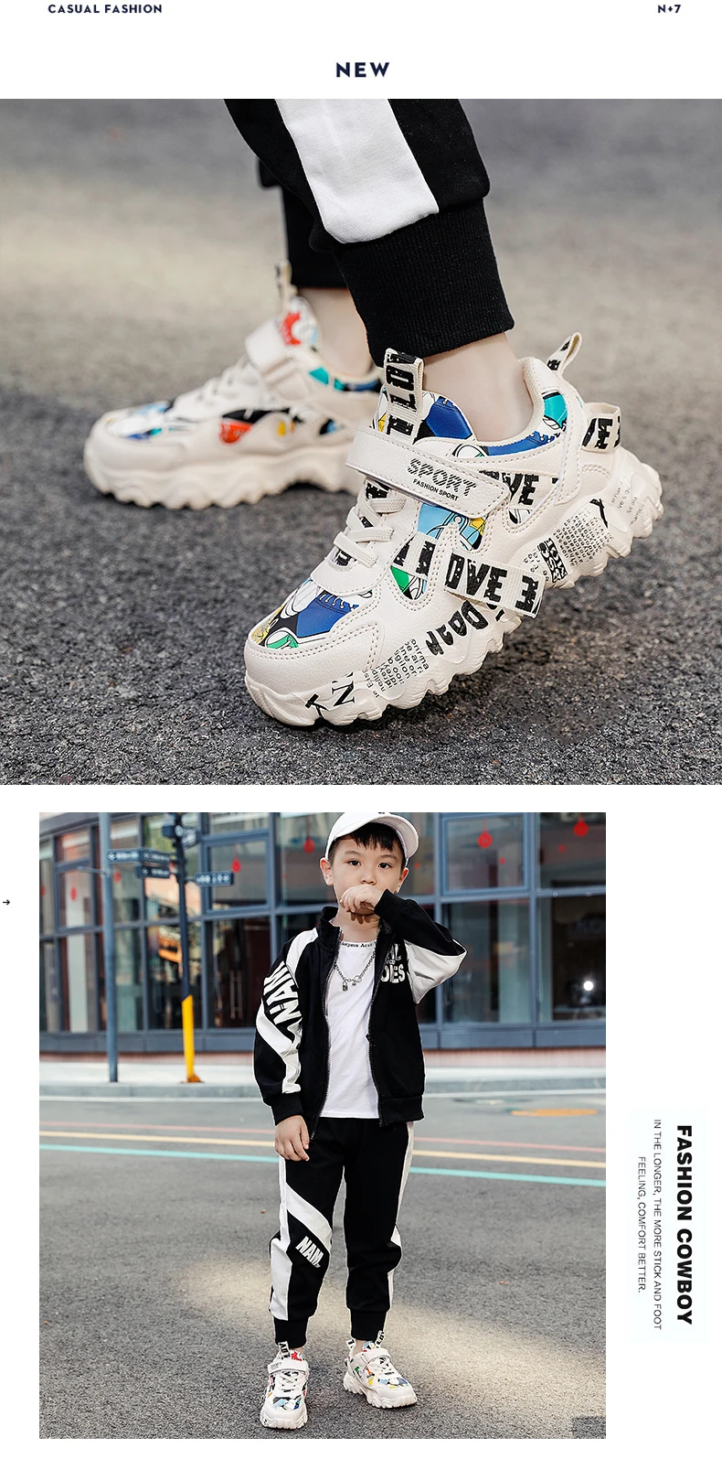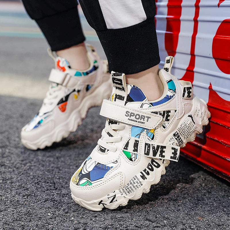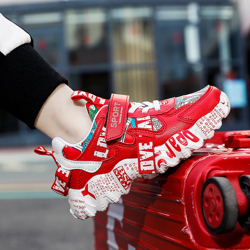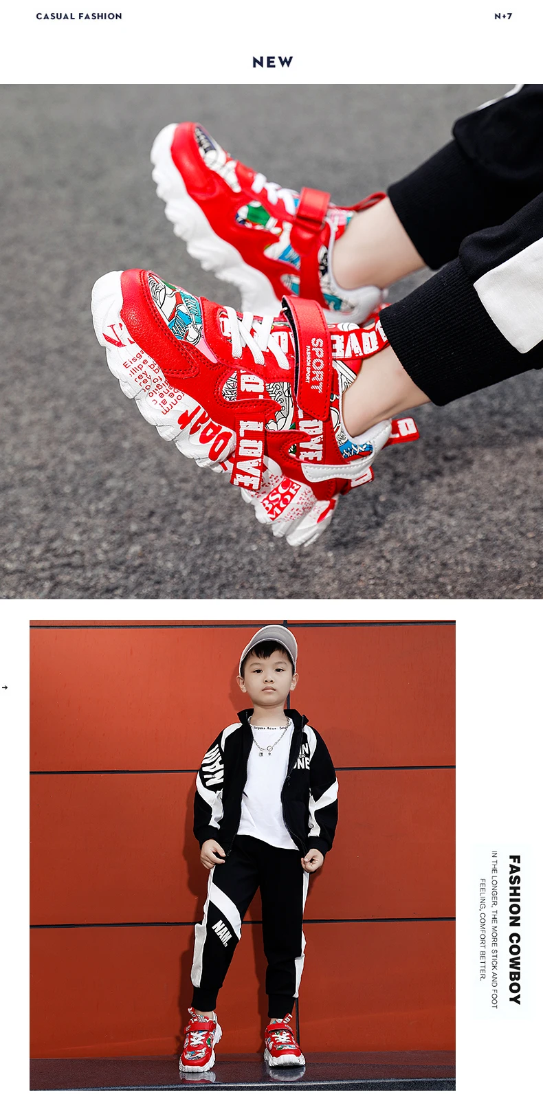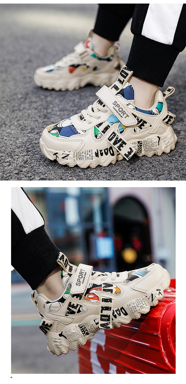 Новинка 2021, детские кроссовки, повседневная детская обувь с рисунком из мультфильма, повседневные кожаные кроссовки для маленьких мальчиков и девочек, легкая обувь для бега
