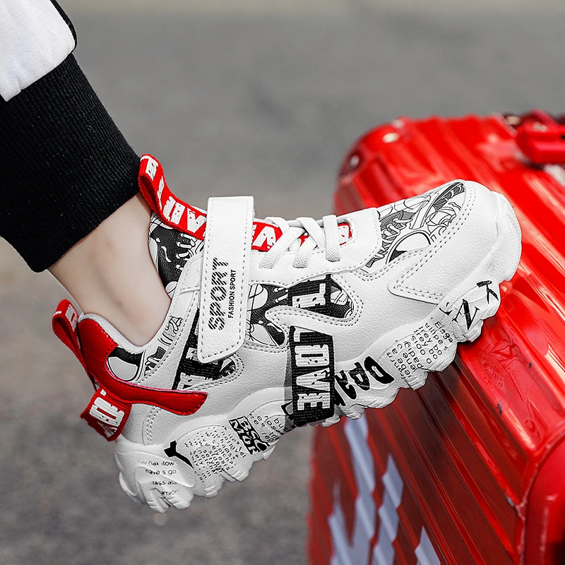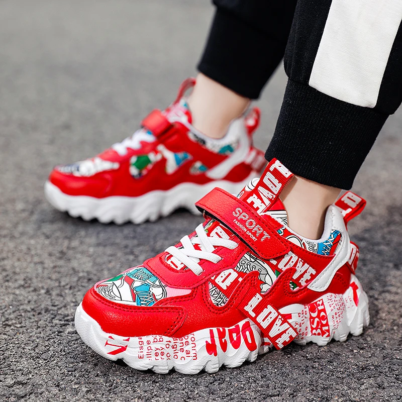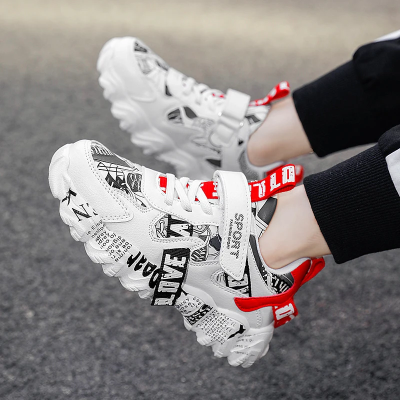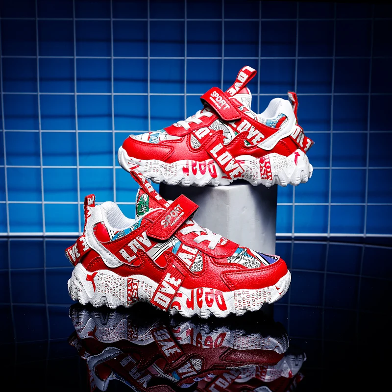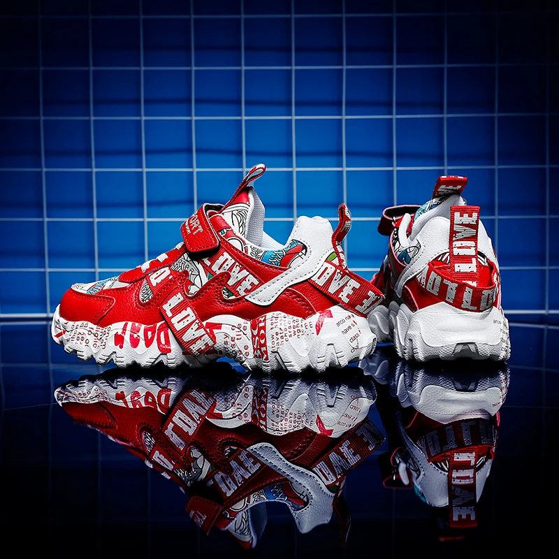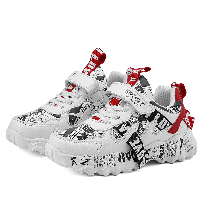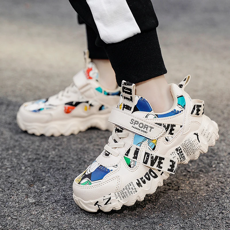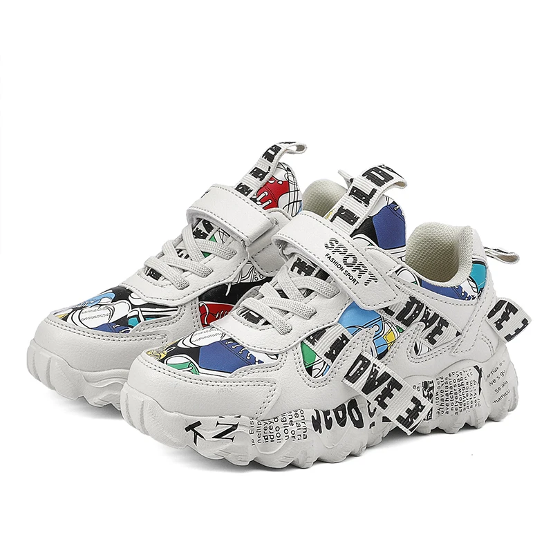 Новинка 2021, детские кроссовки, повседневная детская обувь с рисунком из мультфильма, повседневные кожаные кроссовки для маленьких мальчиков и девочек, легкая обувь для бега