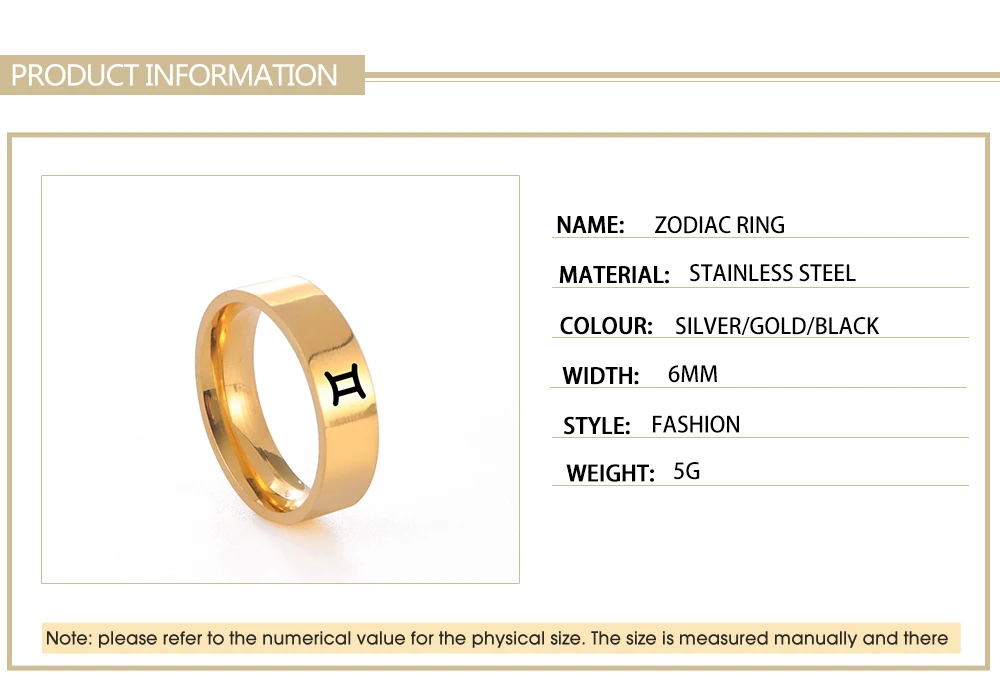 Нержавеющая сталь Skyrim Zodiac женские и мужские кольца модные Leo Libra Aries Gemini Virgo рыбы скорпион Стрелец кольцо подарок на день рождения