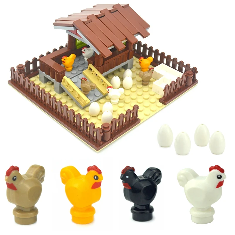 Строительные блоки MOC для животных, фермы, курица, свинка, собаки, цыплята, животные, город, сделай сам, растение, яйца, аксессуары, Минифигурки, детали, модель, игрушки
