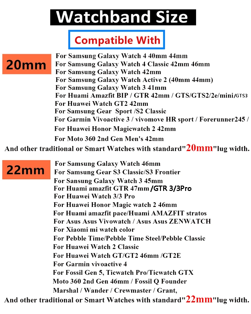 Примечание: ремешок подходит для всех умных часов со стандартной шириной «20 мм» и шириной «22 мм»