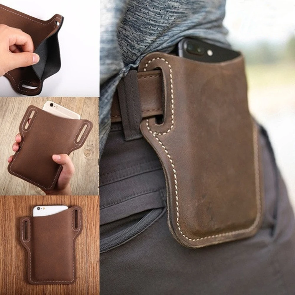 Кожаный чехол в винтажном стиле, Мужская портативная поясная сумка, чехол для телефона с зажимом для ремня, дорожный походный кошелек для мобильного телефона