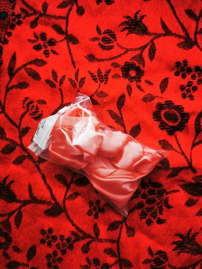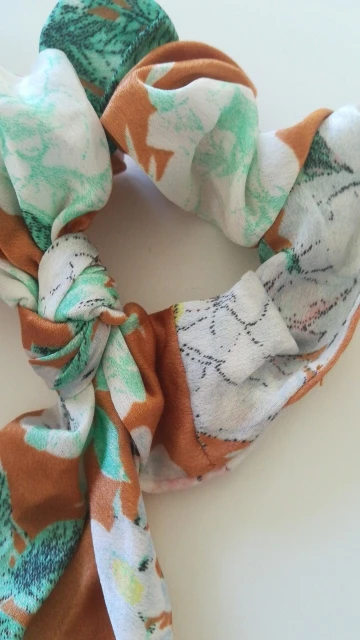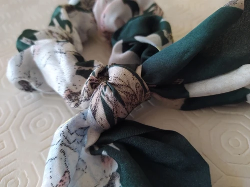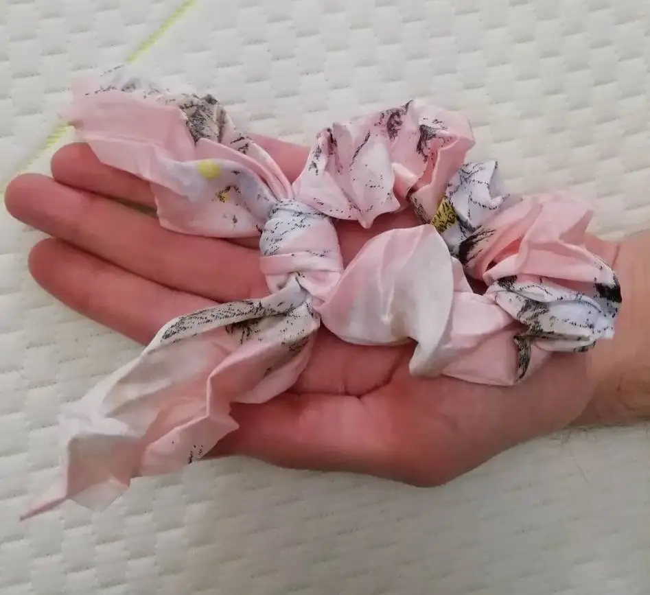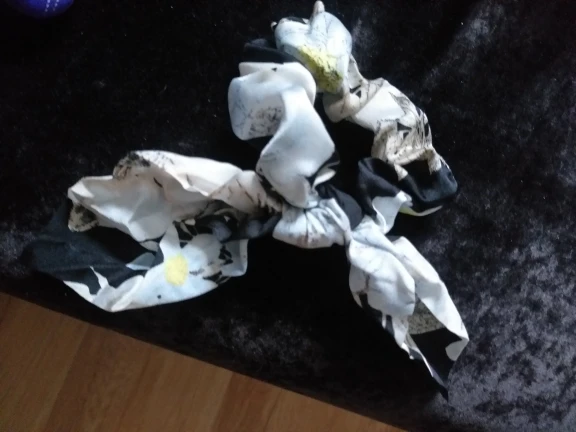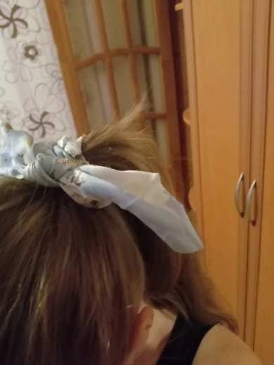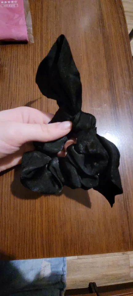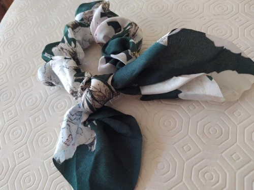 Мило подошло, очень мятая, но легко отгладить... Fyi это просто кусок ткани, привязанной к scrunchie, так что вы можете удалить его