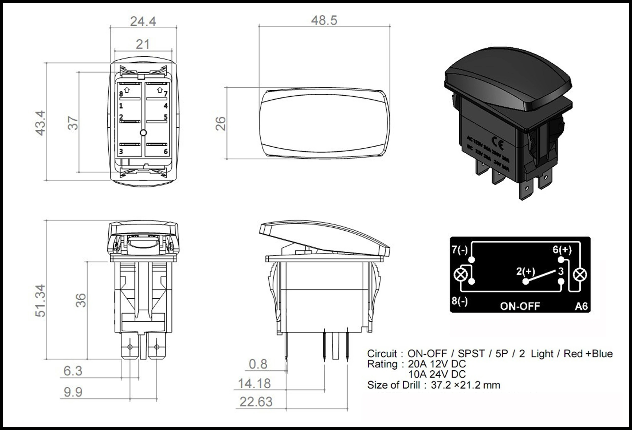 Водонепроницаемый IP68 5-контактный переключатель SPST вклвыкл с синим и красным светодиодом 20A12V 10A24V переключатель для автомобилей, грузовиков, RVs, лодок