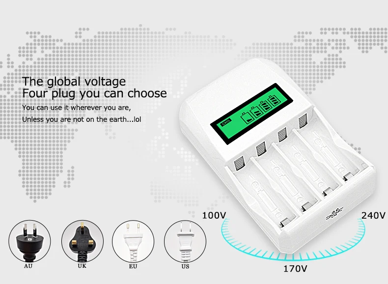 4 слота, Быстрое интеллектуальное зарядное устройство с ЖК-дисплеем...