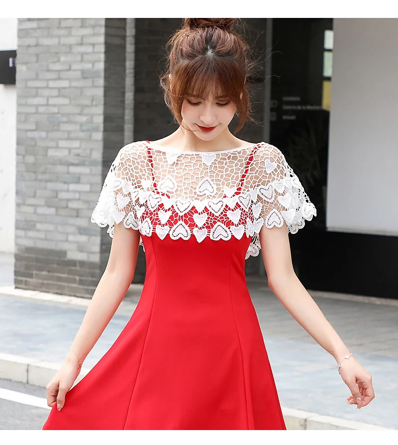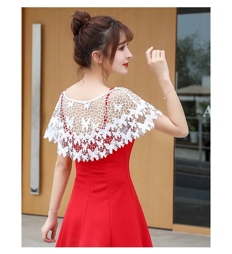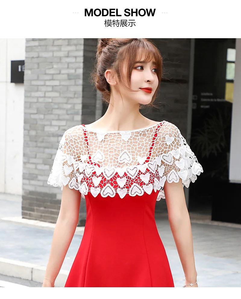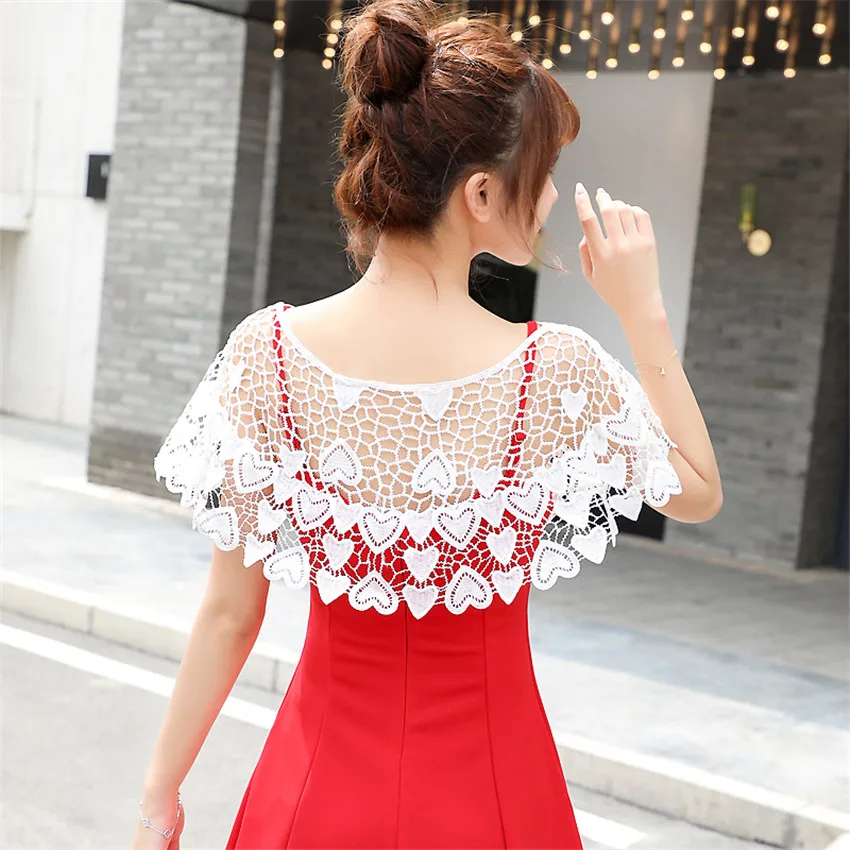 Женская кружевная накидка-болеро, элегантная белая Ажурная шаль, накидка, пуловер, летняя модель WZ1403