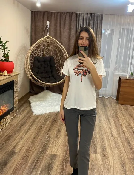 Футболка за 368 руб. Ссылка https://a.aliexpress.com/_mrTFEvs ✅Цена на момент покупки 368. ✅Размеры от S до 2XL. ✅8 вариантов рисунка. ✅Доставка до Тамбовской области около 2 недель. Хорошая базовая футболка с рисунком. Качество хорошее, швы ровные, запаха нет, Какого-либо брака тоже. Ткань супер мягкая, очень приятная на ощупь. Рисунок хорошо и чётко напечатан. Футболка легко стирается, после стирки ничего не изменилось. На параметры 95,70,90 и рост 155 см выбрала размер L, получилось чуть свободно. Как я понимаю, эти футболки слегка маломерки В целом за 368 р футболка очень ничего, свои деньги отпоавдывает [Ссылка] 273,24 руб. 20%СКИДКА | Новая летняя модная футболка с принтом губ, леопардовой расцветки, женские топы в стиле Харадзюку, футболка с круглым вырезом для девушек, смешная футболка с поцелующимися губами https://a.aliexpress.com/_mrTFEvs