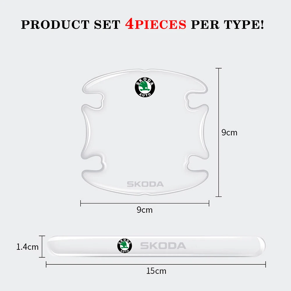 Прозрачная наклейка на дверную ручку автомобиля, значок, Защитная Наклейка для Skoda Octavia Fabia Rapid Yeti Kodiaq Superb Octavia A 5 A 7