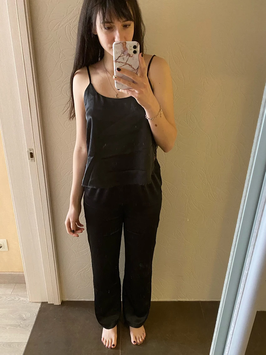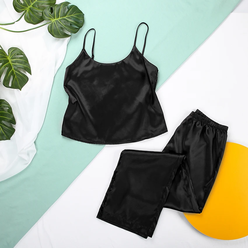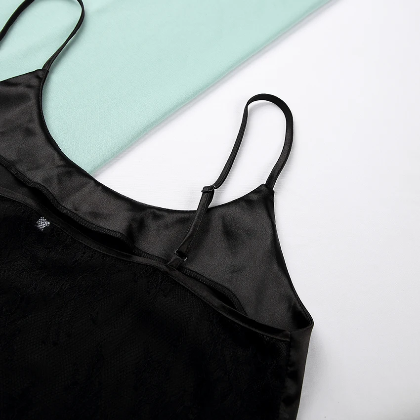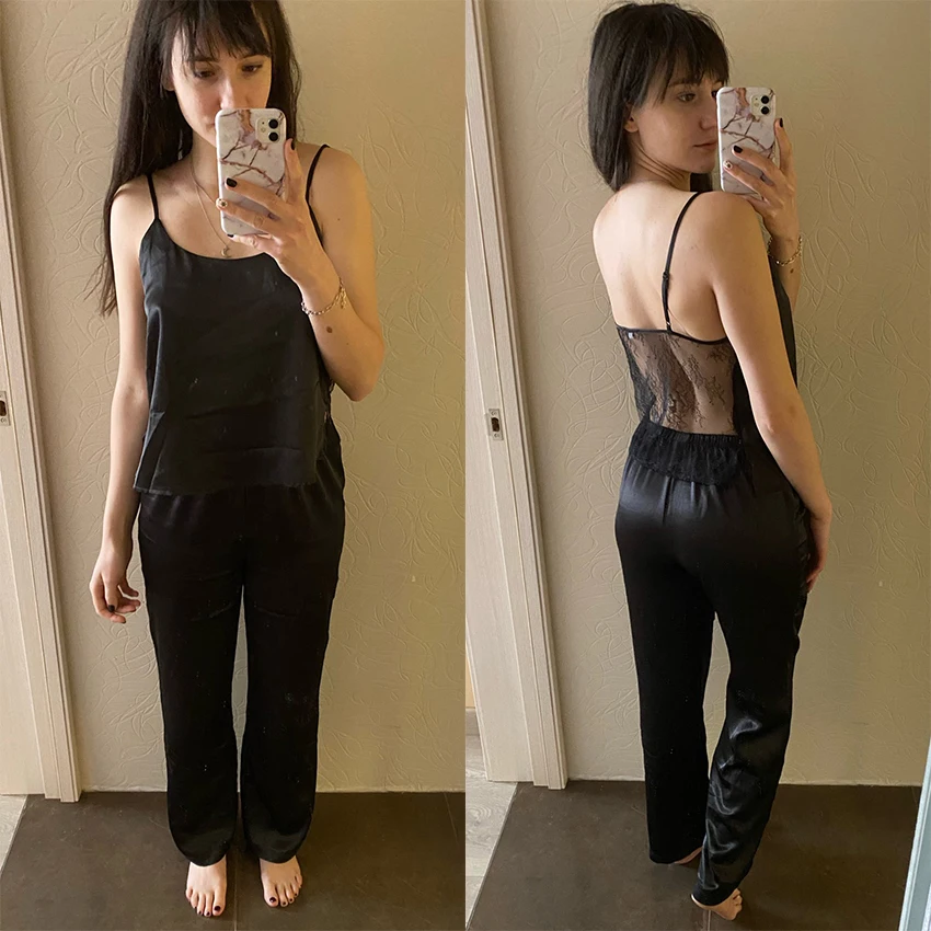Сексуальная пижама HECHAN с открытой спиной, черные кружевные топы на бретелях-спагетти, свободные брюки, одежда для сна, женское интимное нижнее белье, летняя Прямая поставка