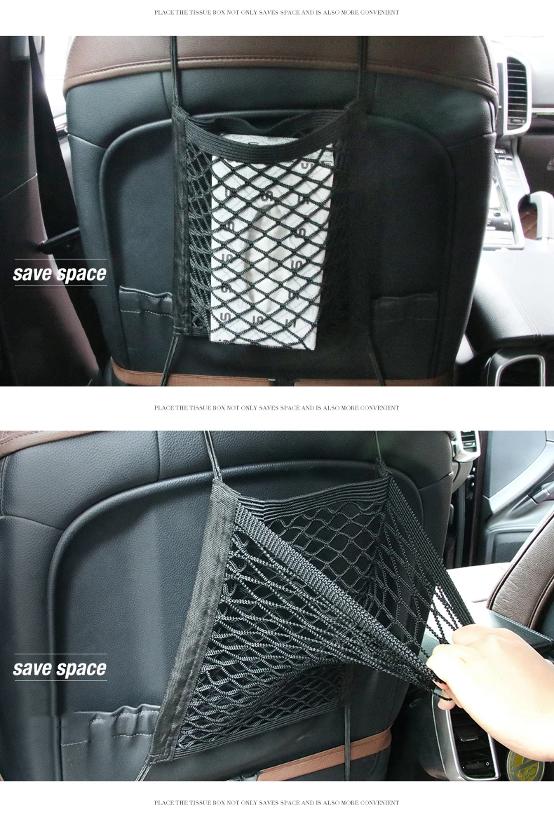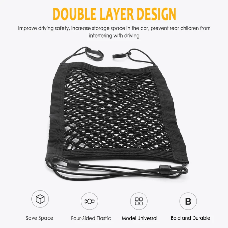 Сумка для хранения заднего сиденья автомобиля, органайзер для автомобильных аксессуаров, Двухярусная эластичная сетка для хранения автомобиля