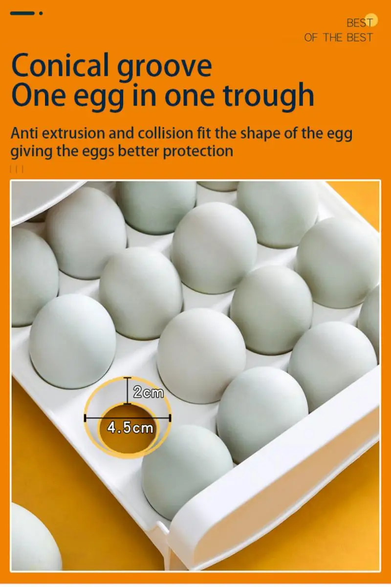 4. Хорошо видно: прозрачный лоток для яиц легко просматривается, поэтому вы можете увидеть оставшееся количество яиц, не открывая коробку, и он может вместить до 60 яиц.