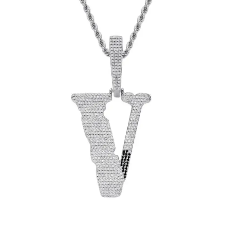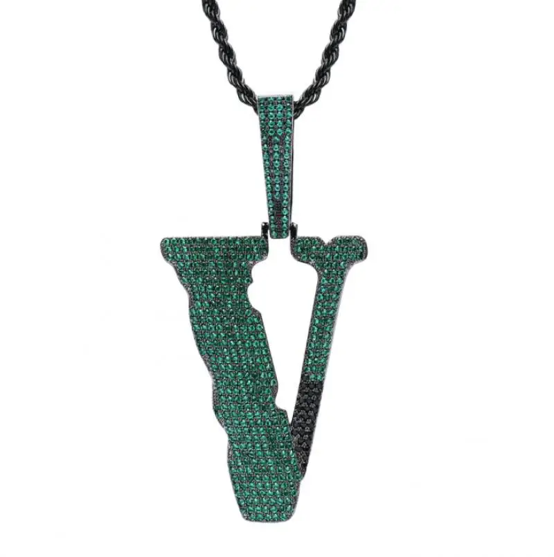 Модные Полный циркон инкрустированные с надписями на английском языке с v-образной горловиной и кулон ожерелье в стиле хип-хоп для мужчин рок вечерние ювелирные изделия