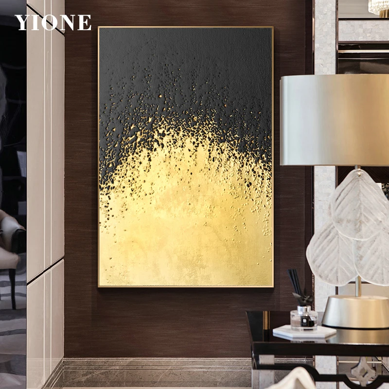 Абстрактный черного и золотого цвета из плотной ткани Картины совре...