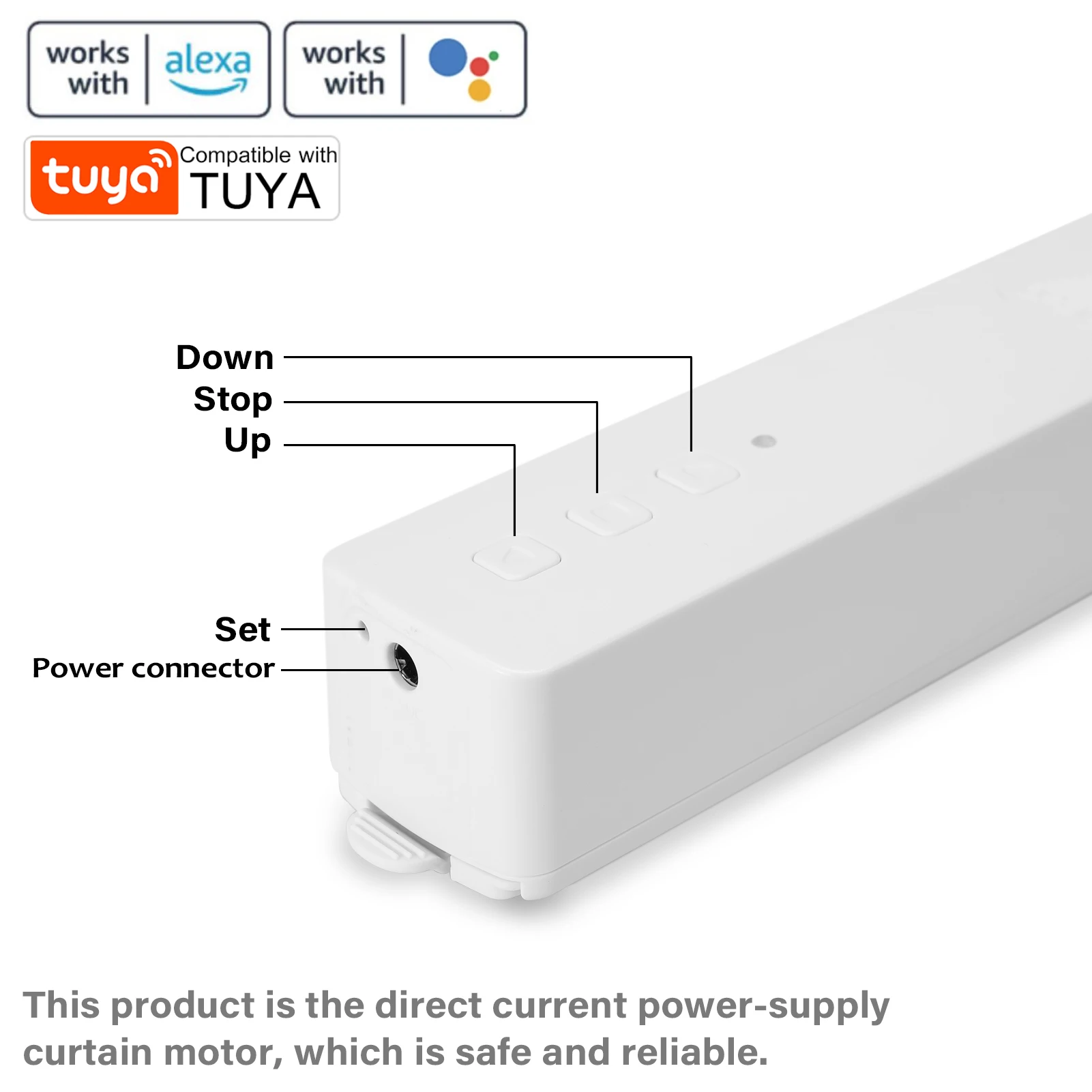 С этим продуктом вам больше не нужно вручную поднимать занавеску, иногда ваши руки держат вещи, это не удобно для вас, чтобы управлять занавеской. С помощью этого продукта вы можете открыть или закрыть шторы через ваш мобильный телефон или даже ваш голос. Это очень легко для вас, чтобы управлять им, приходите и попробуйте.Особенности:С помощью этого шторного мотора вы можете управлять шторкой через приложение Tuya, а Голосовое управление подключается к интеллектуальному голосовому помощнику, вам не нужно тянуть мотор за руки, что может сэкономить ваше время.Когда вы находитесь вдали от дома, с этим карнизом и приложением, вы можете управлять занавеской с помощью своего телефона, больше не нужно беспокоиться о том, чтобы забыть открыть или закрыть занавески вовремя.Функция синхронизации: вы можете установить несколько времени в соответствии с вашим стилем жизни, который может дать вам умную жизнь.Вы можете установить свой лимит на поездки и останавливаться там, где вы хотите, и максимальное количество поездок неограничено, что позволит вам лучше использовать опыт.Этот продукт является двигателем для штор прямого тока, который является безопасным и надежным.Червячно-турбо самоблокирующееся тормозное устройство используется для обеспечения надежного тормоза и тишины при использовании.Характеристики:Материал: АБС-пластикЦвет: белыйТип адаптера: ЕС, Великобритания, США, Австралия (опционально)Номинальное напряжение: 5 В прямого токаНоминальная мощность: 6,0 WНоминальный крутящий момент: 0,45 нмСкорость вращения: 30 об/минРабочая температура: -20 ℃ ~ + 65 ℃Встроенный частота приема: 915 МГц, 2,4 ГГцРазмер посылка: 220*185*40 мм/8,7*7,3*1,6 дюймовПосылка Вес: 630g / 1.4lbПримечание:Этот двигатель является приводным устройством, применяемым к бисерным цепные роликовые шторы и реализуем интеллектуальную автоматическую работу.Упаковочный лист:1 * мотор для штор1 * адаптер (опционально)1 * Руководство пользователя