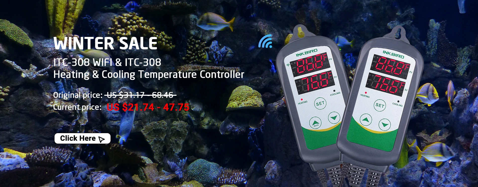 Inkbird ITC-308-WIF умный калибровочный нагревательный и Охлаждающий термостат с водонепроницаемым зондом для аквариума