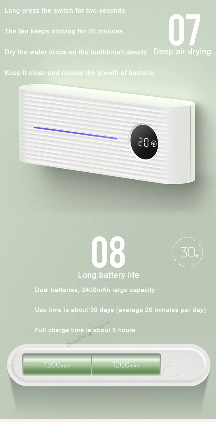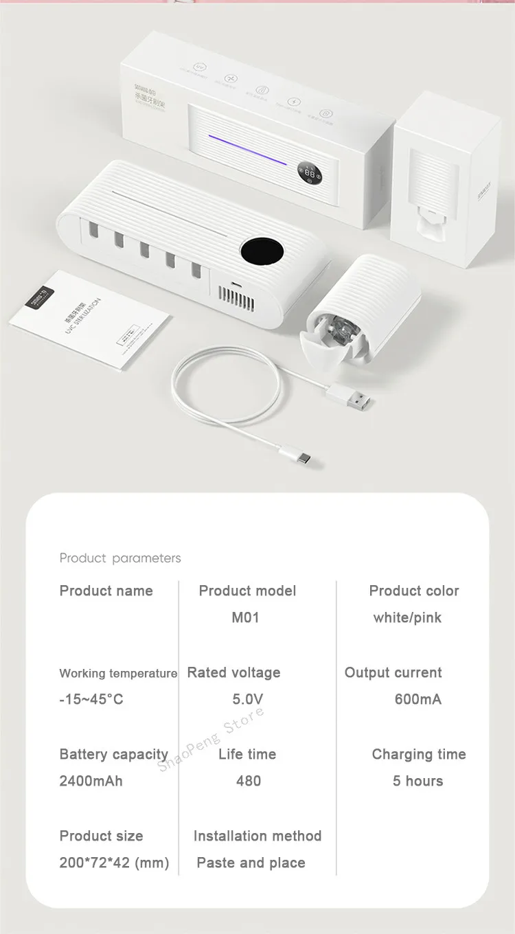 1 x УФ-светильник держатель стерилизатора для зубной щетки (или с дозатором зубной пасты)1 х база для хранения1 x зарядный кабель