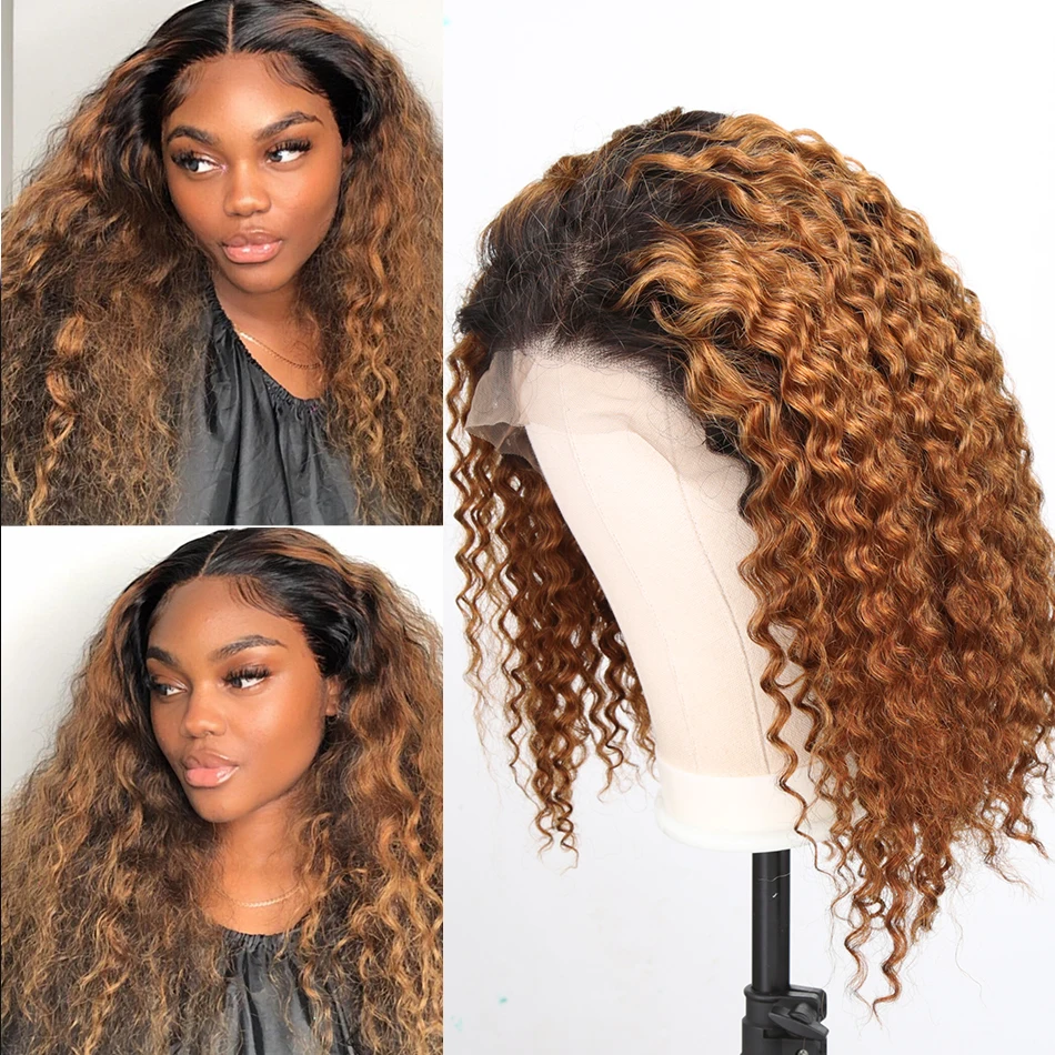 Короткие вьющиеся волосы с эффектом омбре 1B27, парик Боб 13X1, парики из человеческих волос на сетке спереди, бразильский фронтальный парик с глубокой волной для черных женщин