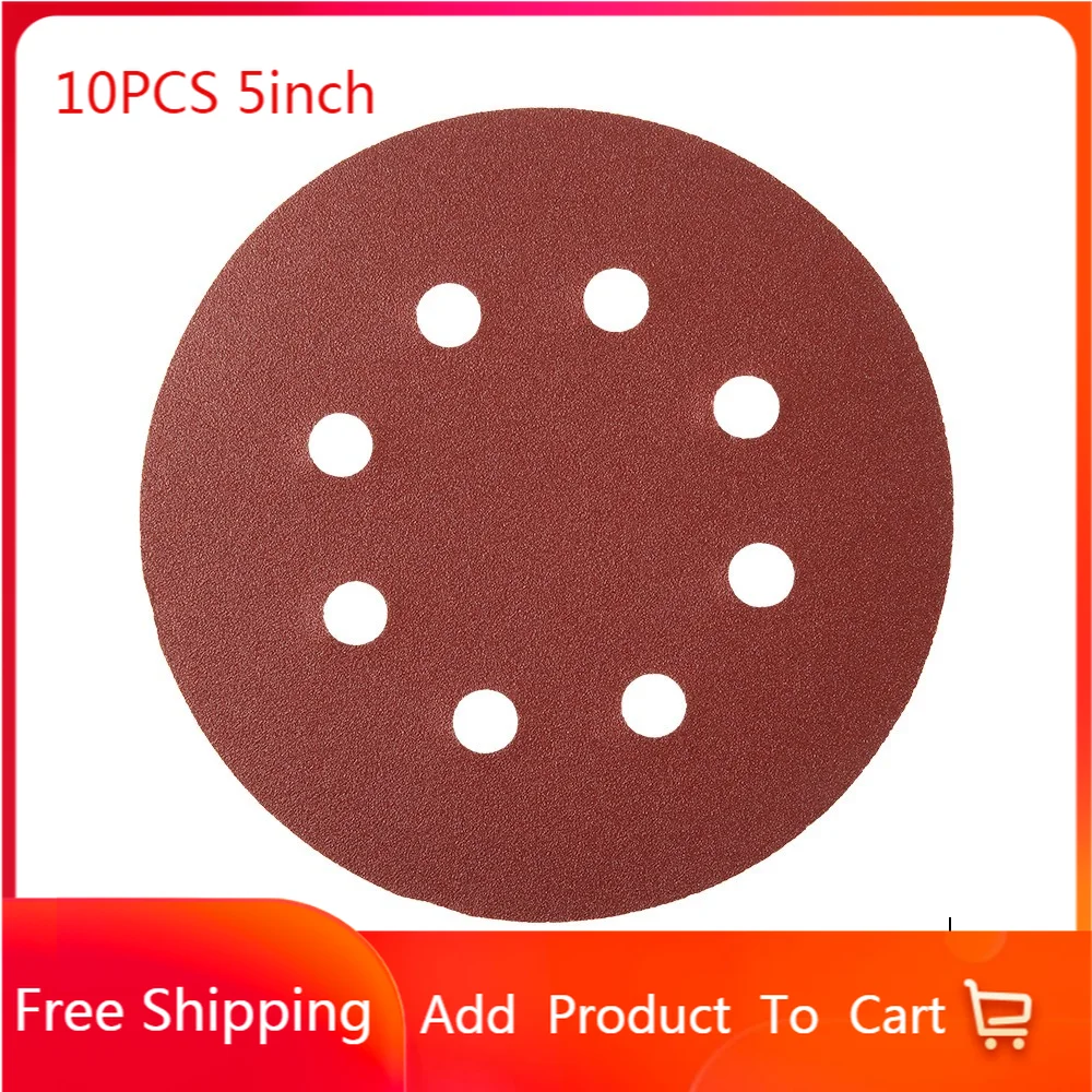 10 шт. 5 дюймов 125 мм круглая наждачная бумага диск с восемью отверстиями пескоструйные листы зернистость 60-3000 крючок и петля шлифовальный диск Полировочный инструмент
