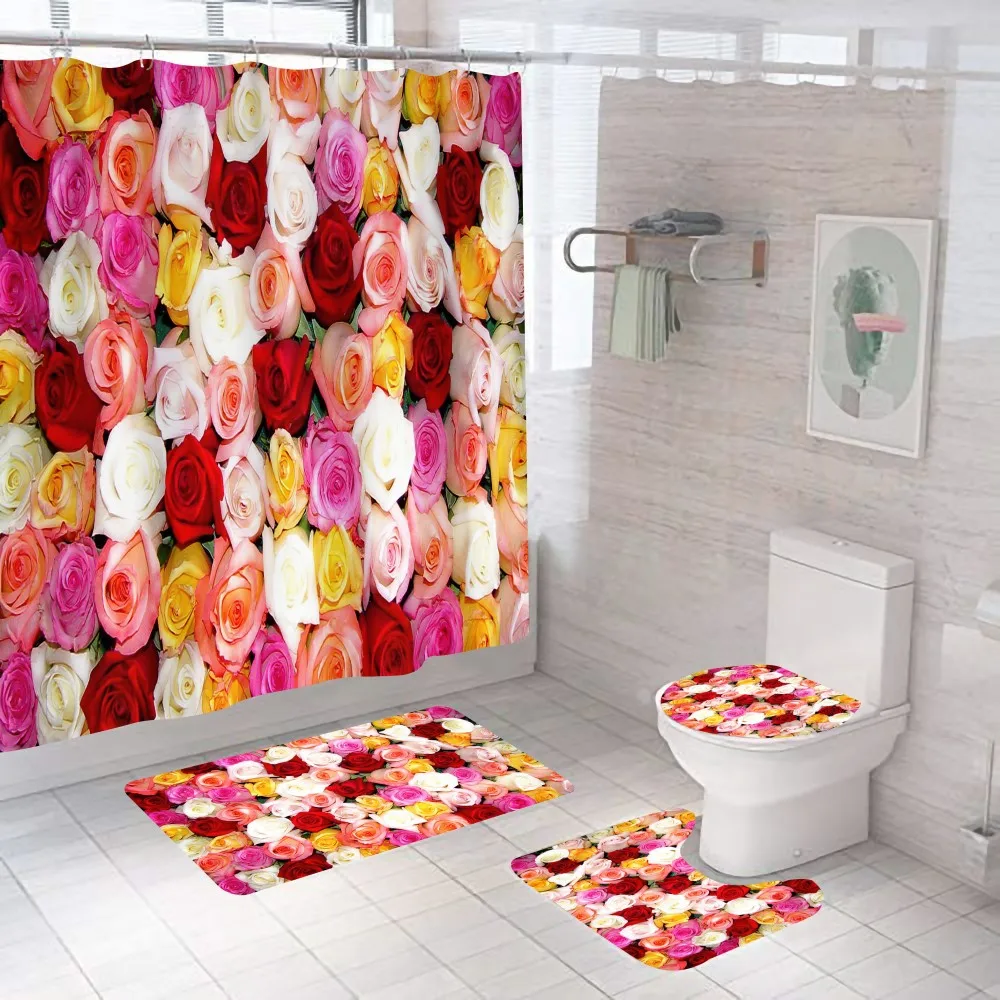 Набор штор для душа с розовой короной и цветочным принтом, простой мраморный декор для ванной комнаты с крючками, противоскользящие ранцы