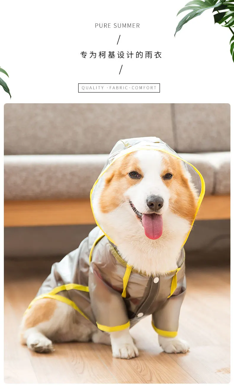 Водонепроницаемый дождевик для собак, дождевик с капюшоном для щенков корги, всесезонный летний дождевик для собак