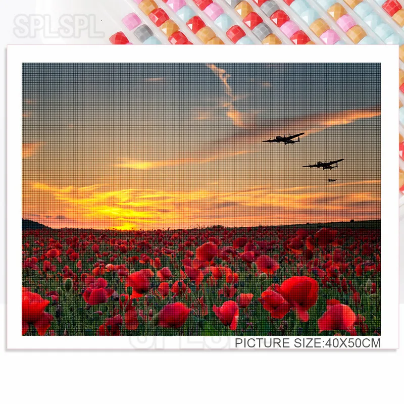 5D алмазная живопись пейзаж Красный мак цветок море красивое море кокосовое дерево белый цветок Золотые листья спальня рисунок