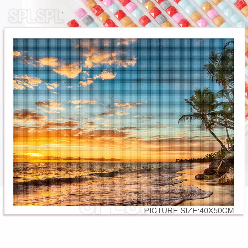 5D алмазная живопись, пейзаж, подсолнечник, цветок, поле, море, кокосовое дерево, Заснеженная Гора, морская пляжная пещера, постер для кухни, зала, спальни