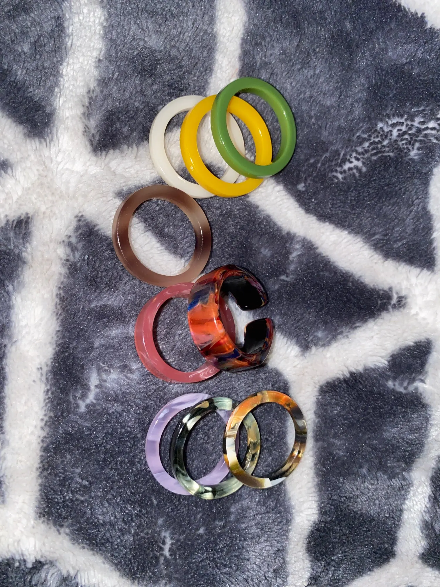 Кольца женские разноцветные из смолы, 10 шт.лот